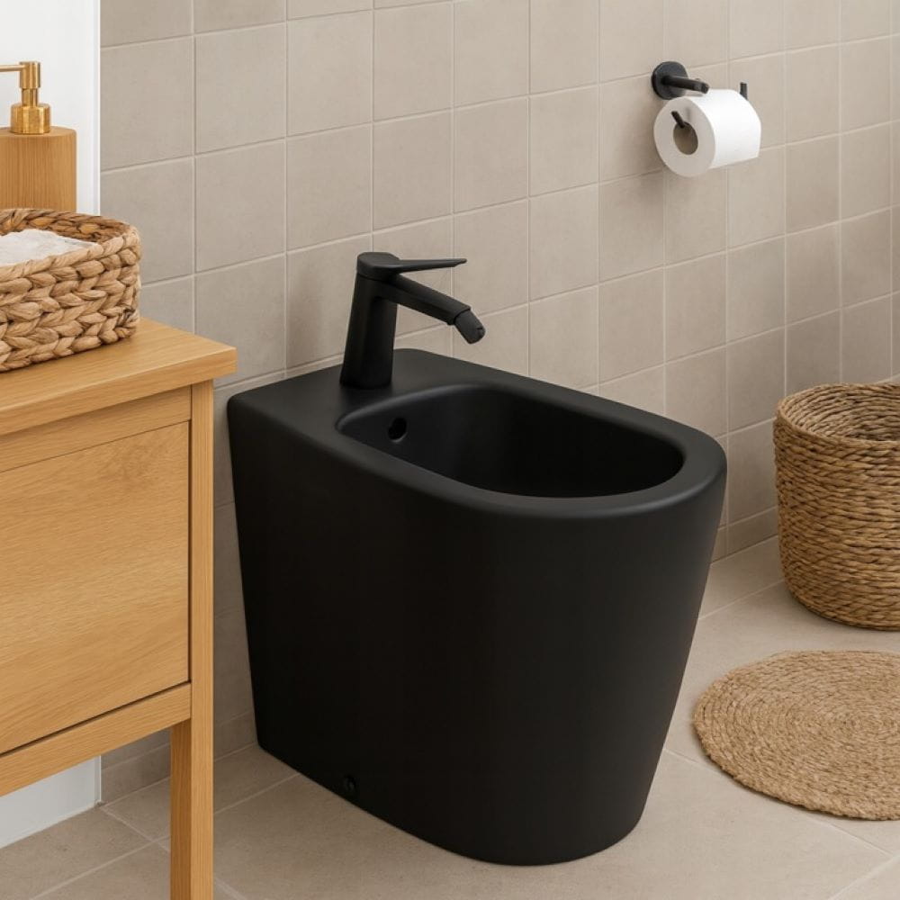 Bateria bidetowa AROMA w wykończeniu czerni to połączenie elegancji i funkcjonalności. Jej subtelna forma wprowadza do łazienki nowoczesny charakter, a jednocześnie nie przytłacza wnętrza.
