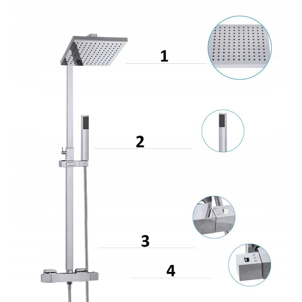 Bateria natryskowa Cube Slim to ponadczasowy element wyposażenia łazienki lub kabiny prysznicowej, który umożliwia nad wyraz komfortowe, a przede wszystkim relaksujące kąpiele. Model, wyposażony w wygodną deszczownicę, przeznaczony jest do montażu natynkowego. Zestaw, dzięki klasycznym kształtom i barwie, jest spójny z wieloma stylami wnętrzarskimi i dopełni przestrzeń każdej łazienki. Bateria natryskowa wykonana z mosiądzu. Głowica ceramiczna wysokiej jakości. Powłoka odporna na przebarwienia i wysoką temperaturę.