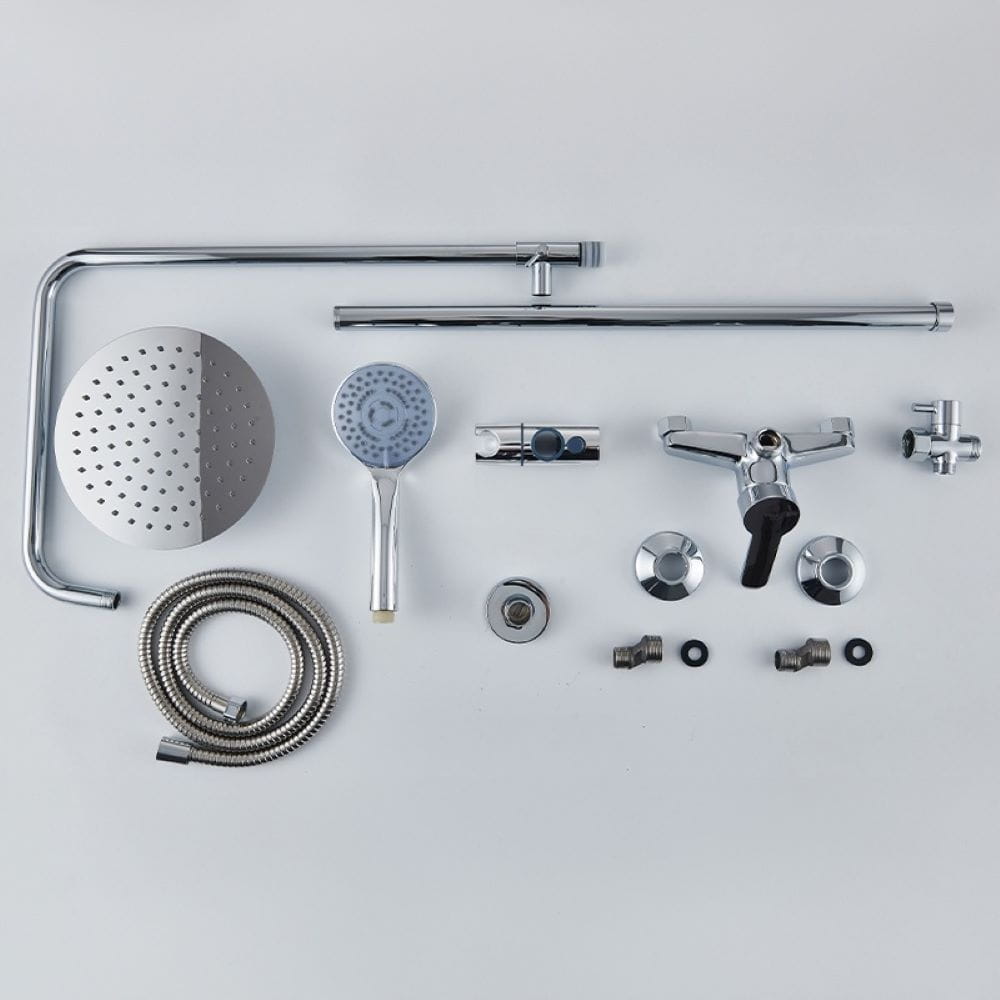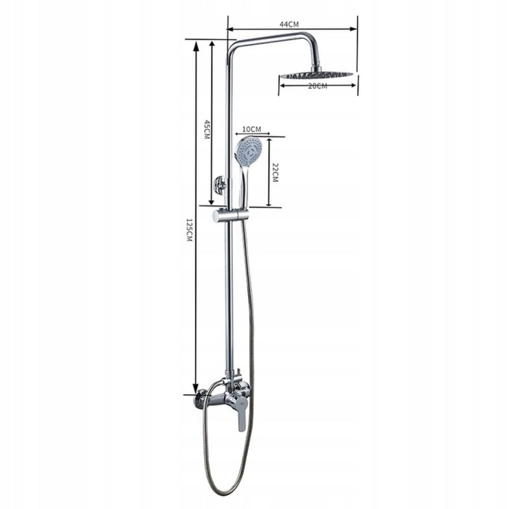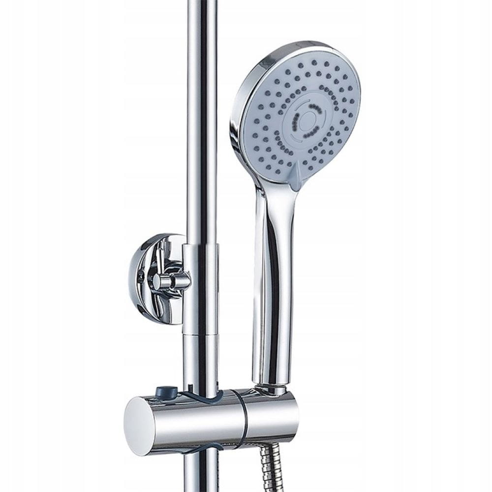Zestaw wyposażono w regulowany drążek (82–125 cm), który pozwala dopasować wysokość deszczownicy do wzrostu użytkownika. Jednouchwytowa bateria umożliwia precyzyjną regulację temperatury i ciśnienia wody, a przełącznik funkcji pozwala łatwo zmieniać strumień między deszczownicą a słuchawką prysznicową.