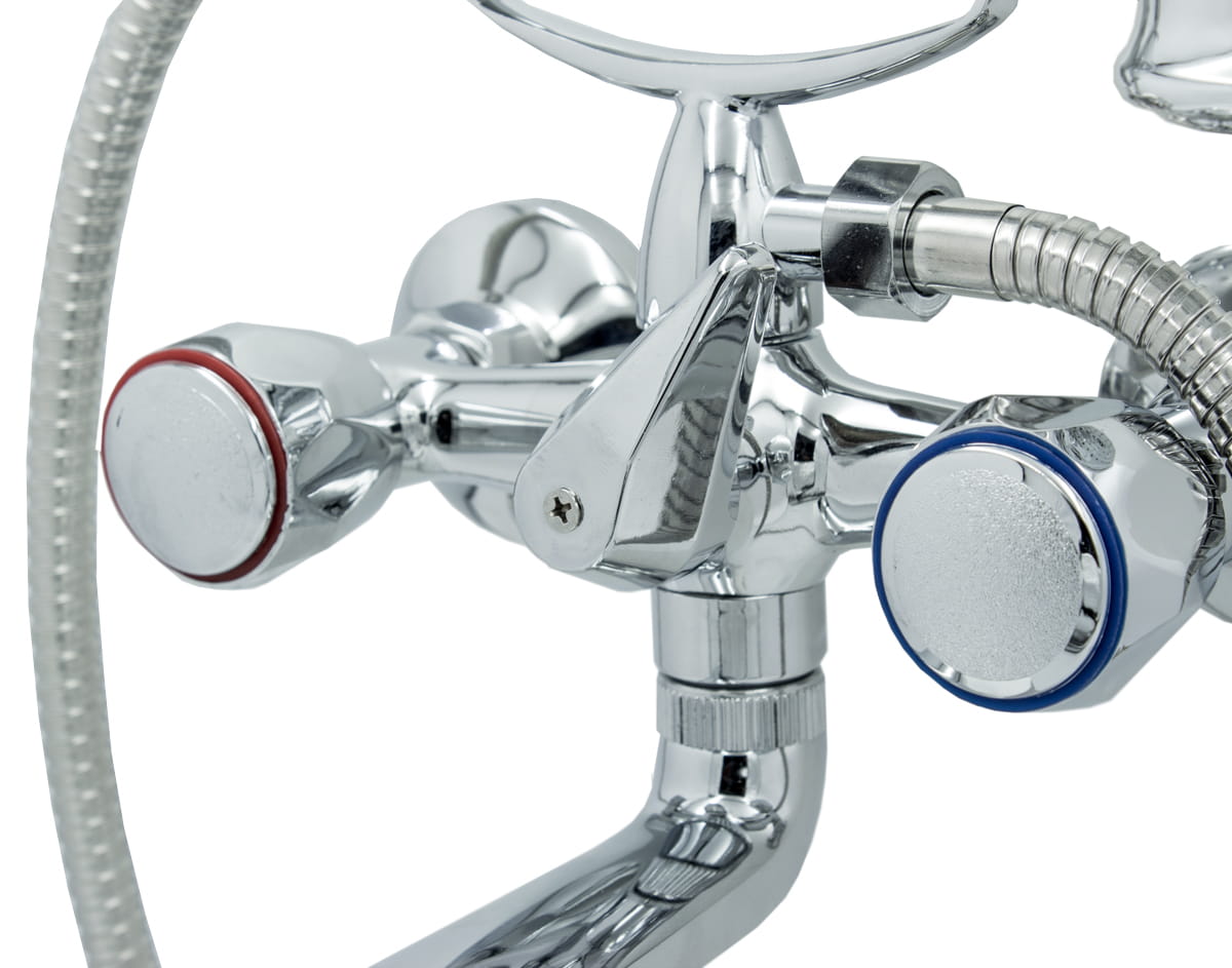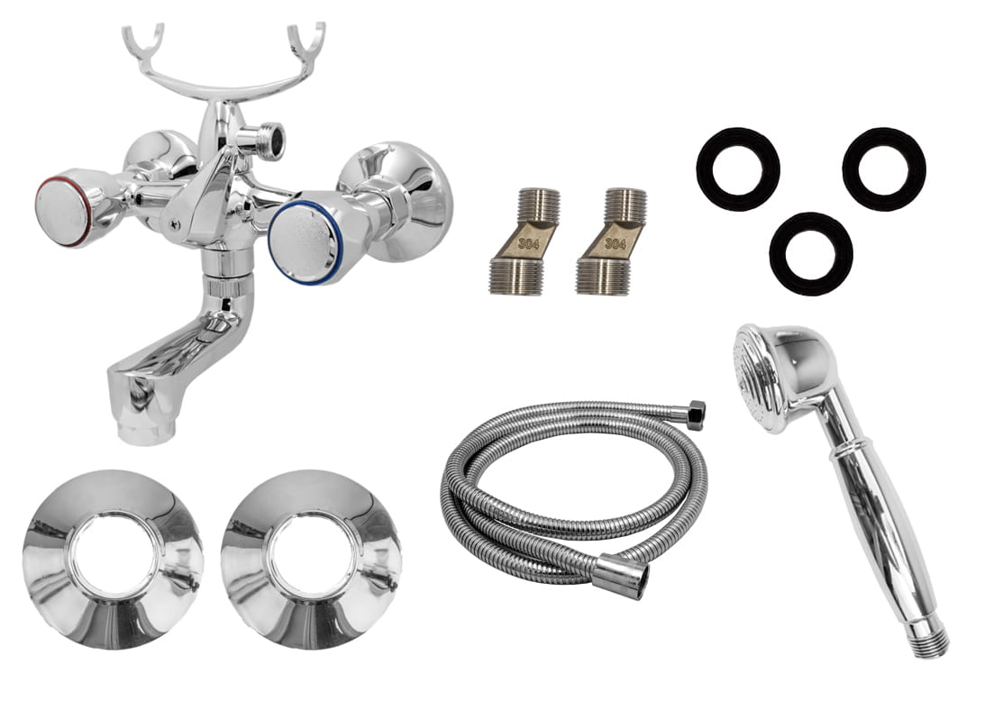 Klasyczna bateria wannowa o wysokiej jakości wykonana z mosiądzu, w kolorze chrom/wysoki połysk. Ceramiczne głowice 1/4 obrotu. Standardowy rozstaw 150 mm, regulowany na krzywkach 130 - 170 mm. Słuchawka wykonana z tworzywa PCV. Chrom odporny na przebarwienia i wysoką temperaturę.