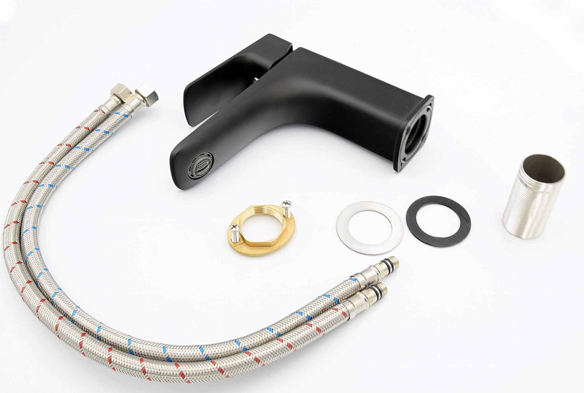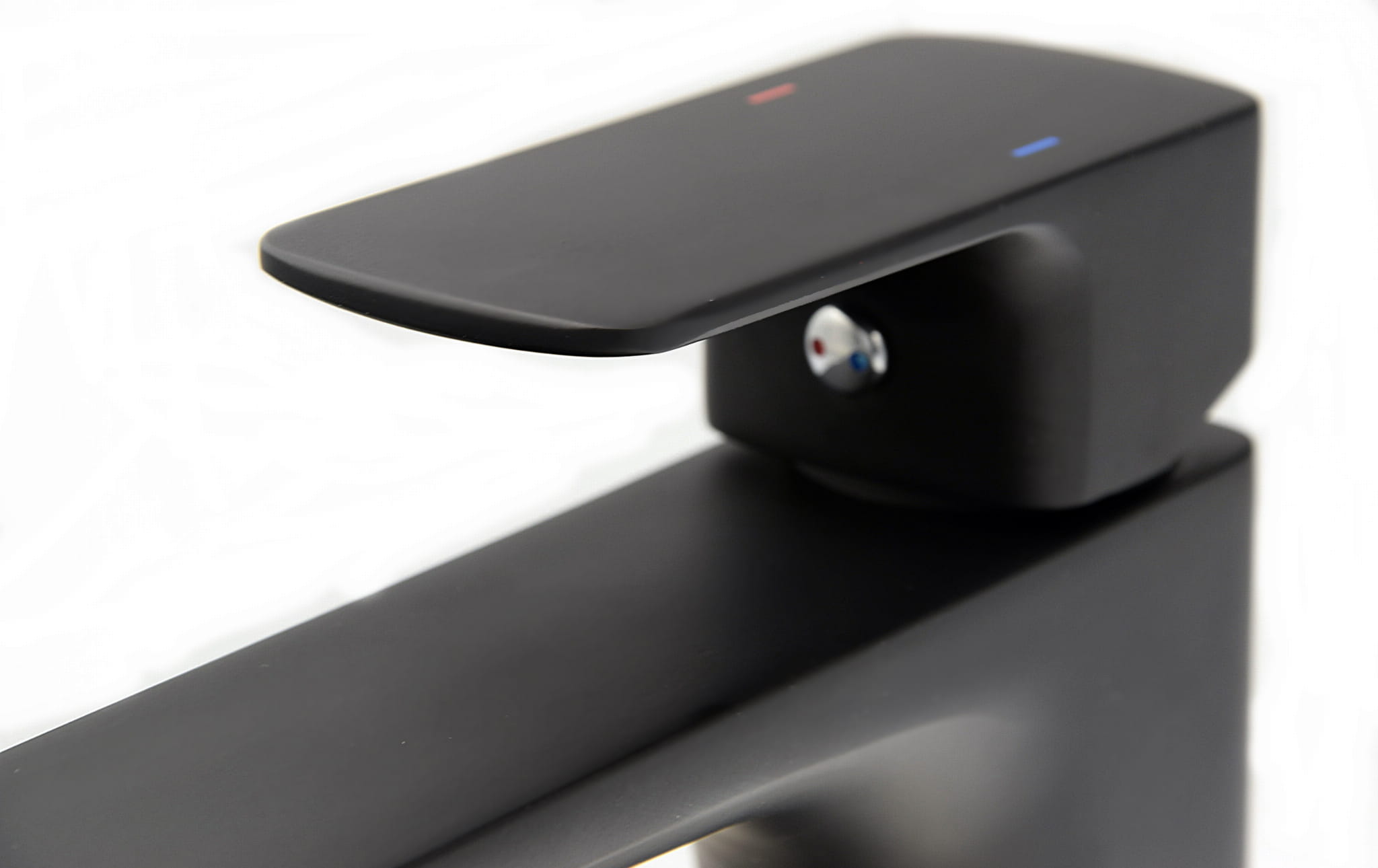 Castres bateria umywalkowa stojąca o wysokiej jakości, wykonana z mosiądzu, w kolorze czarnym/mat. Powłoka baterii odporna na przebarwienia i wysoką temperaturę. Ceramiczna głowica. Standardowy otwór montażowy 35 mm.
