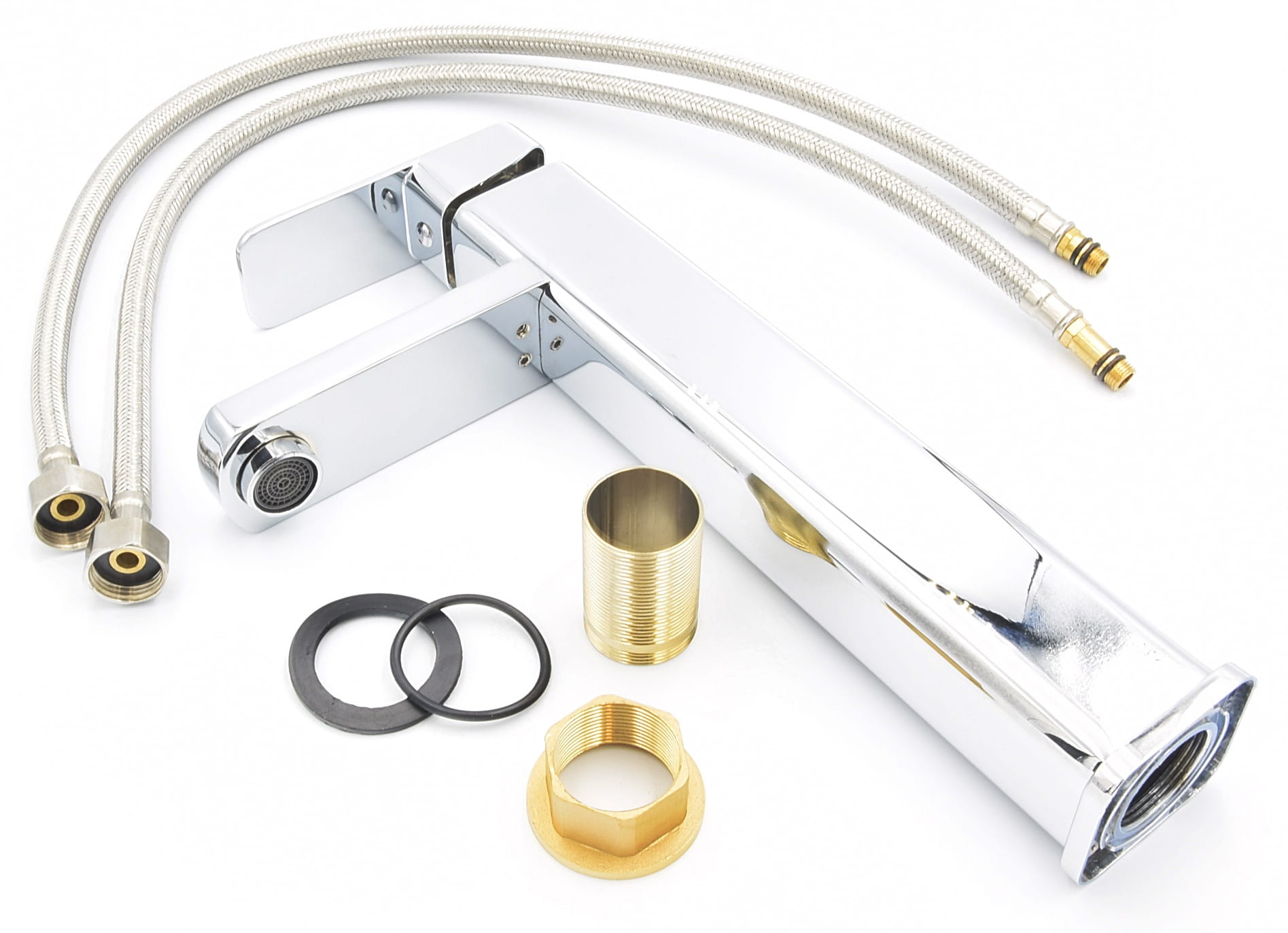 CHOLET bateria umywalkowa nablatowa wysoka, stojąca o wysokiej jakości, wykonana z mosiądzu, w kolorze chrom/wysoki połysk. Powłoka baterii odporna na przebarwienia i wysoką temperaturę. Ceramiczna głowica. Standardowy otwór montażowy 35 mm. Perlator wymienny m24.