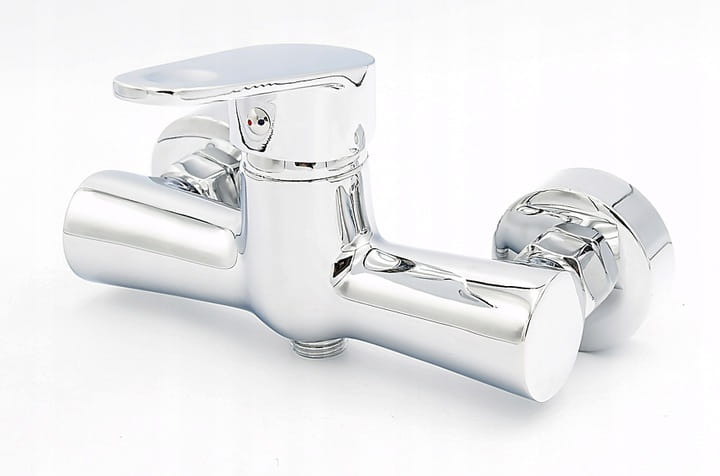 Bateria natryskowa wykonana z mosiądzu w kolorze chrom. Głowica ceramiczna wysokiej jakości. Rozstaw standardowy 150 mm. W zestawie: bateria, krzywki, uszczelki, rozety.