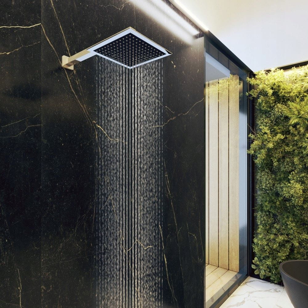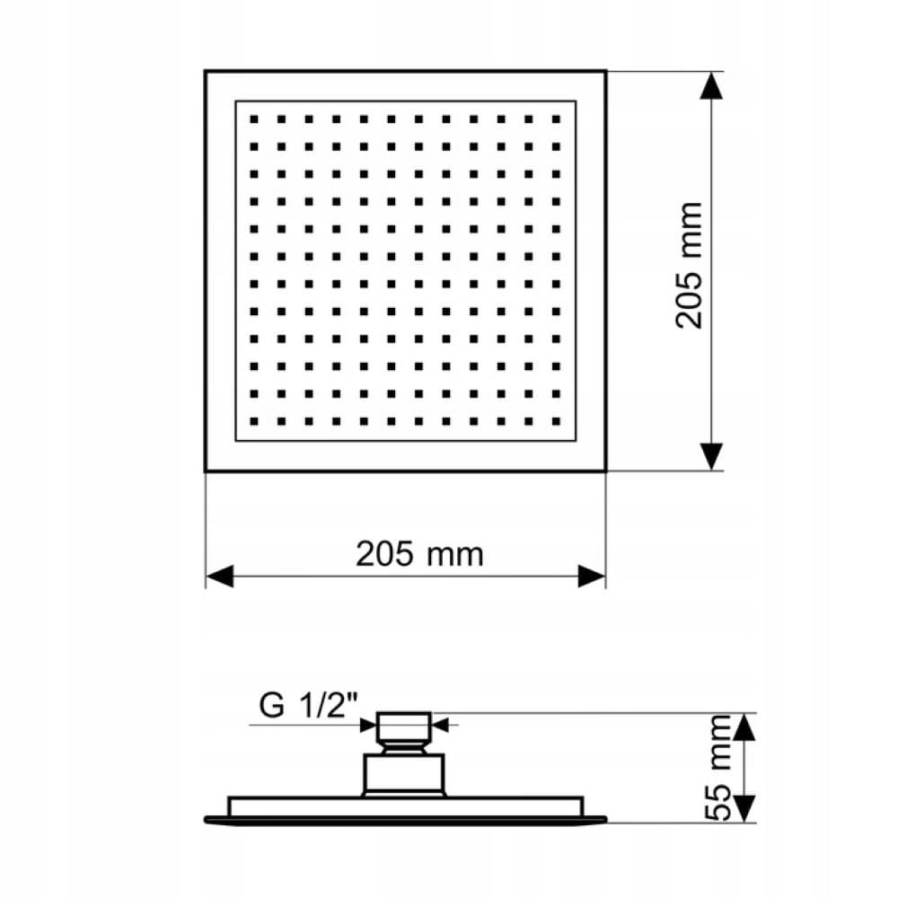 Kwadratowa deszczownica K-205 o wymiarach 205x205 mm to doskonałe połączenie nowoczesnego designu i funkcjonalności. Dzięki eleganckiemu wykończeniu w czerni i chromie, idealnie pasuje do nowoczesnych i minimalistycznych łazienek. Posiada silikonowe dysze, które są łatwe w czyszczeniu i odporne na osadzanie kamienia.