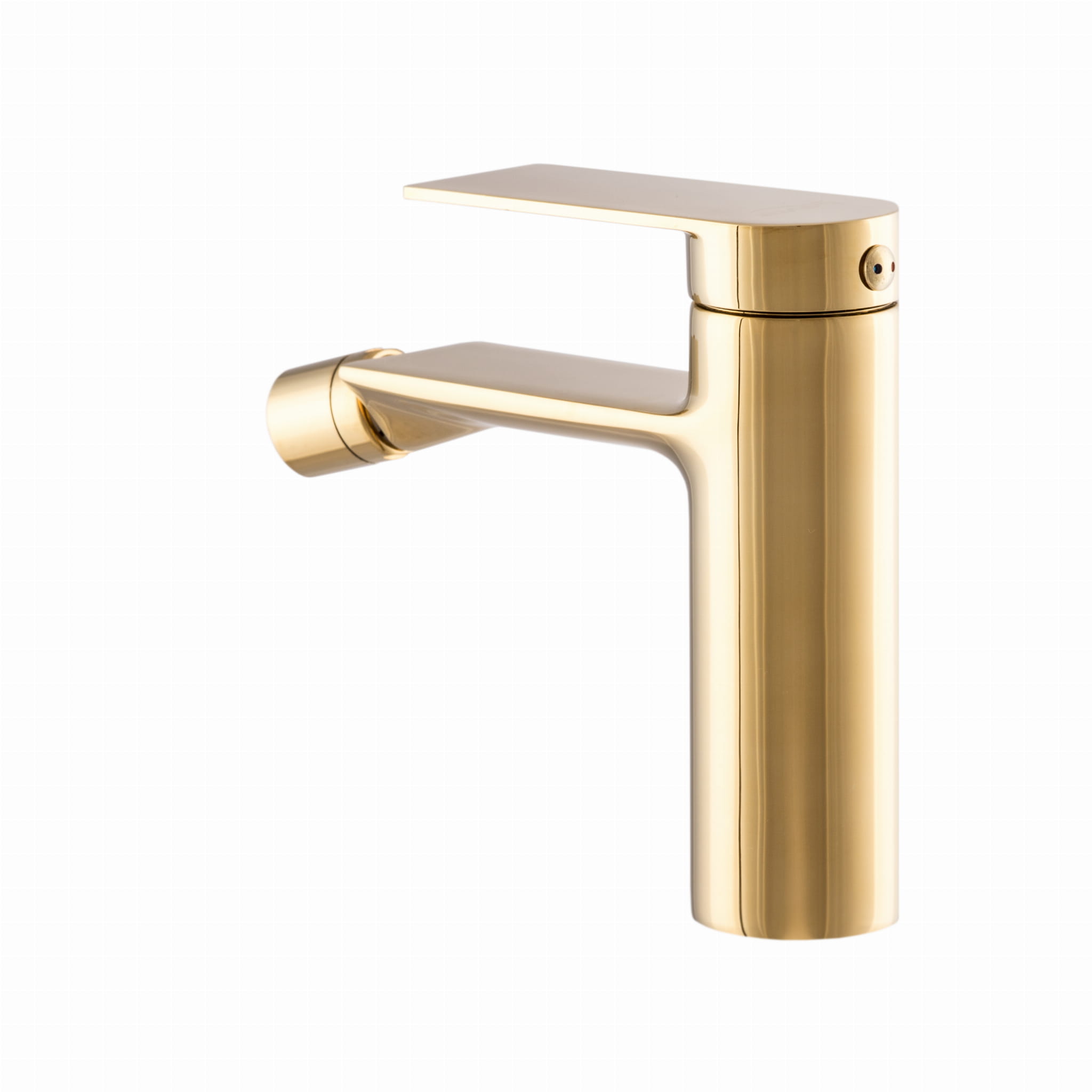 Bateria bidetowa - wodospad kaskada FAROS o wysokiej jakości, wykonana z mosiądzu, w kolorze złotym. Powłoka baterii odporna na przebarwienia i wysoką temperaturę, ceramiczna głowica. Standardowy otwór montażowy 35 mm.