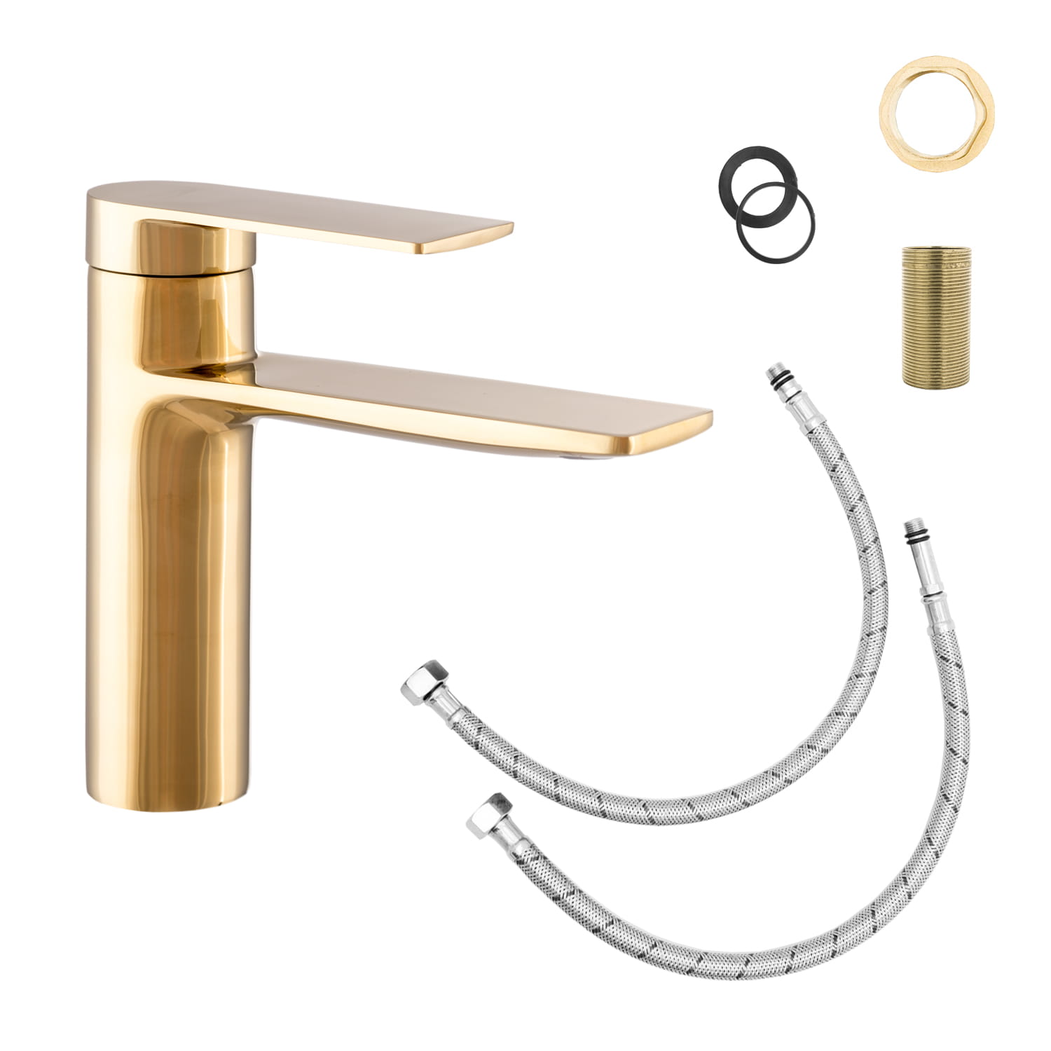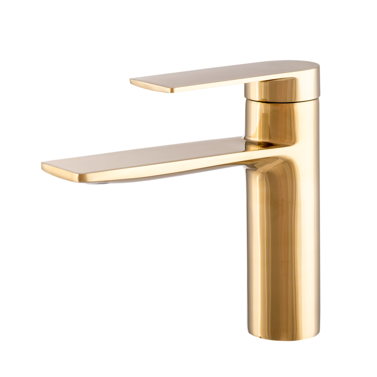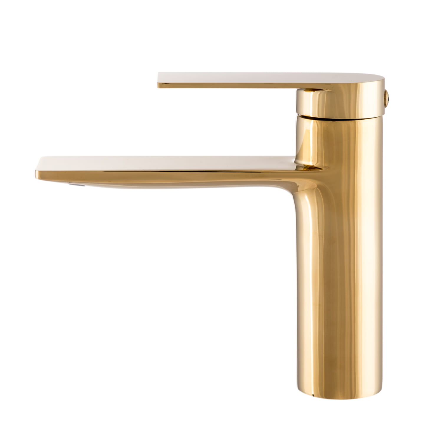 Bateria umywalkowa - wodospad kaskada FAROS o wysokiej jakości, wykonana z mosiądzu, w kolorze złotym. Powłoka baterii odporna na przebarwienia i wysoką temperaturę, ceramiczna głowica. Standardowy otwór montażowy 35 mm.