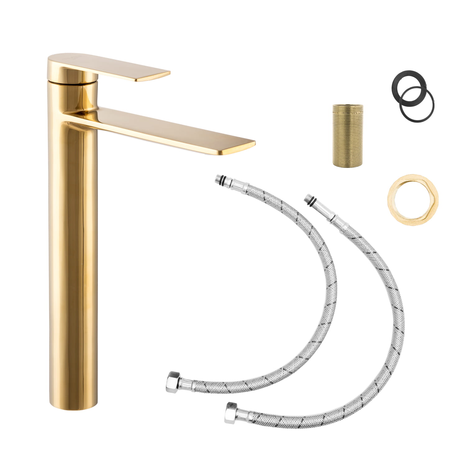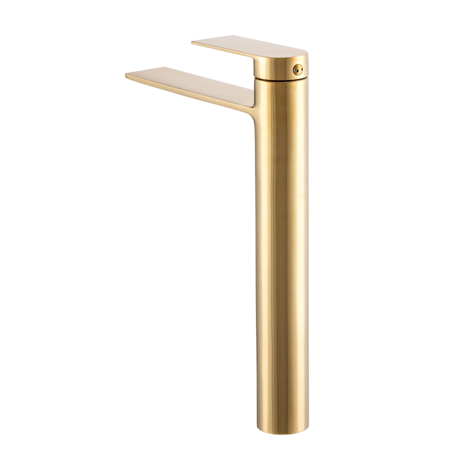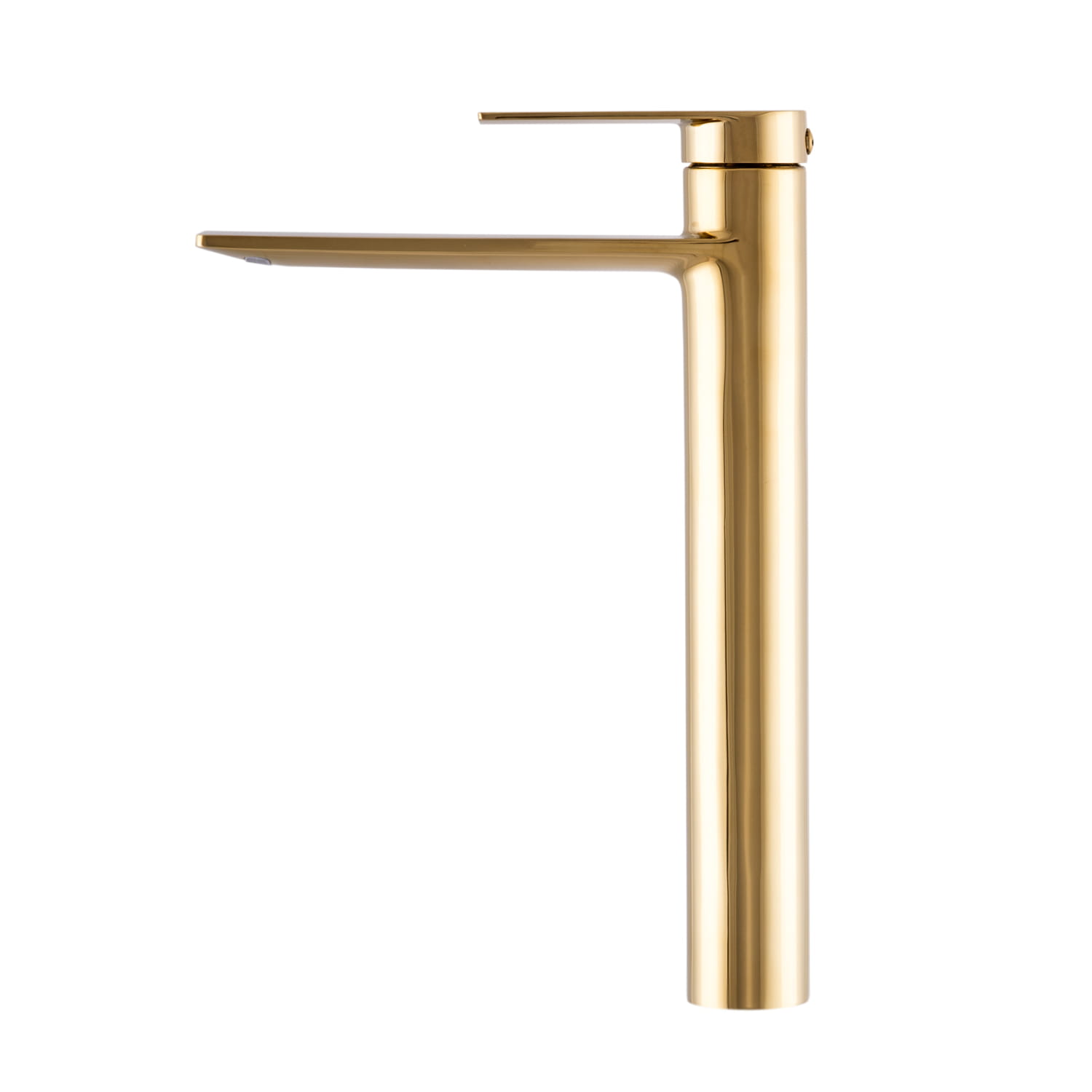 Bateria umywalkowa wysoka nablatowa - wodospad FAROS o wysokiej jakości, wykonana z mosiądzu, w kolorze złotym. Powłoka baterii odporna na przebarwienia i wysoką temperaturę, ceramiczna głowica. Standardowy otwór montażowy 35 mm.