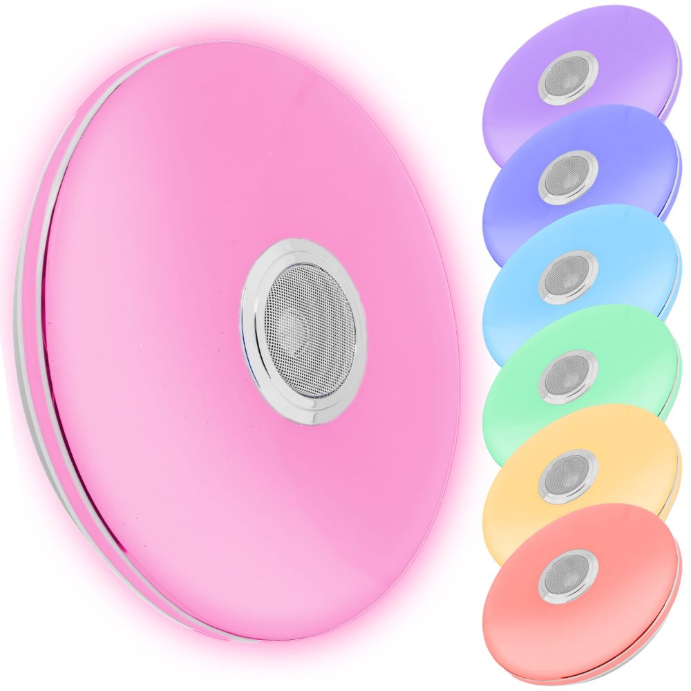 Lampa plafon LED RGB z głośnikiem Bluetooth z pilotem. Plafonem można sterować za pomocą pilota z zestawu lub aplikacji takiej jak "i-lamp" czy "ilight".