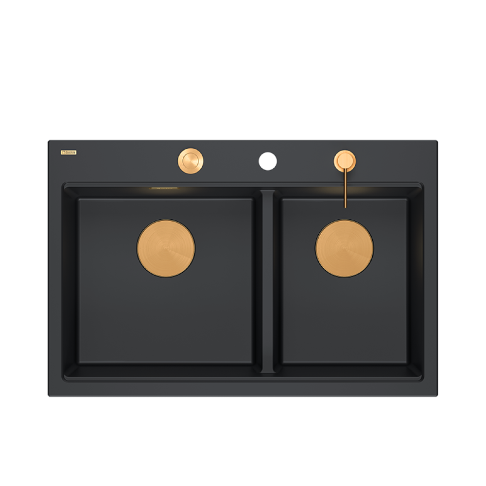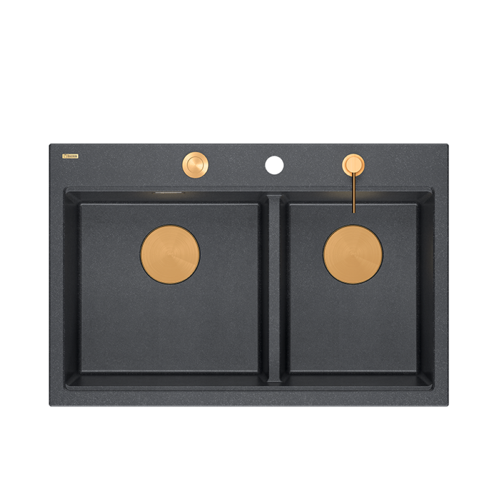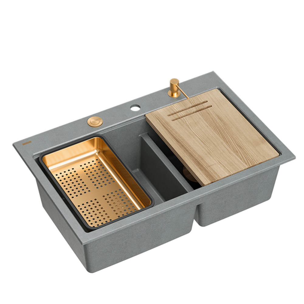 Marc 120 Workstation GraniteQ zlewozmywak 2-komorowy 760x500 + syfon push to open + dozownik + deska + wkładka / elementy miedziane / 5 kolorów