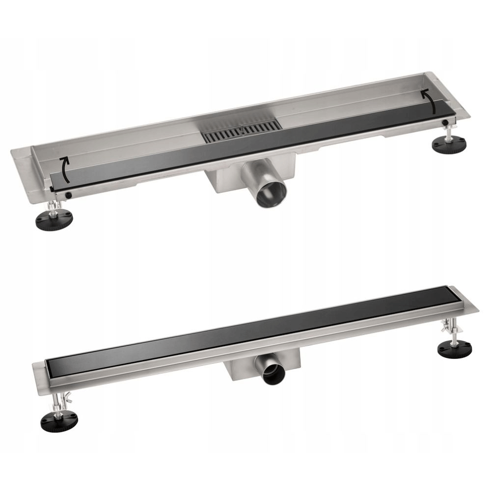 Odpływ liniowy wykonany ze stali nierdzewnej SS304. Nie korodująca, gruba stal 1,2 mm. Wysoka jakość. Czarne szkło.
