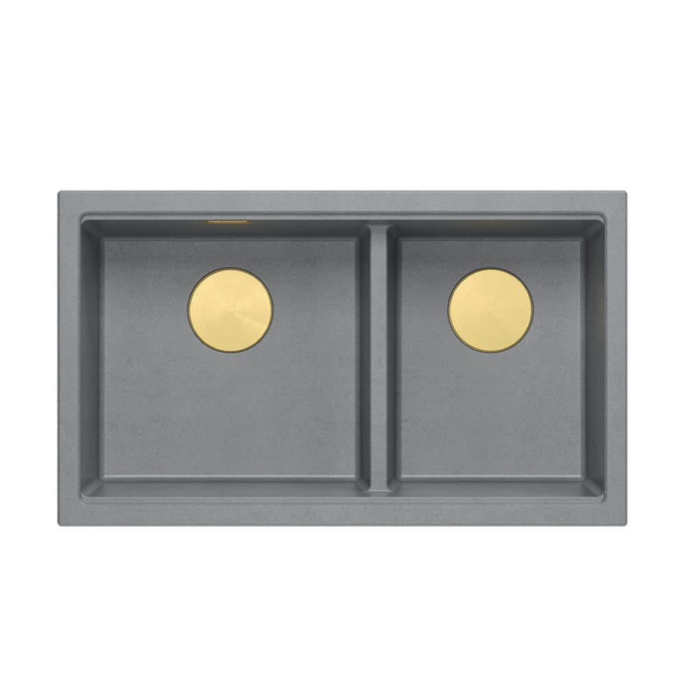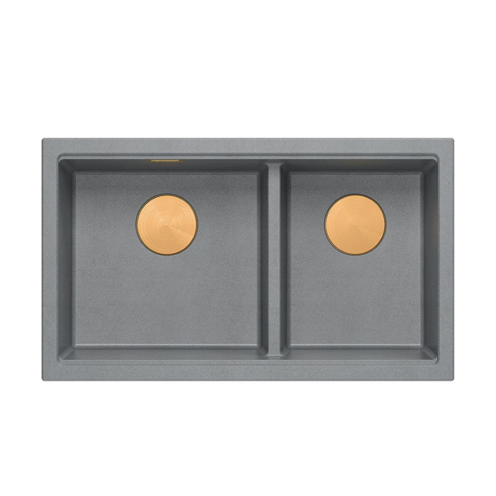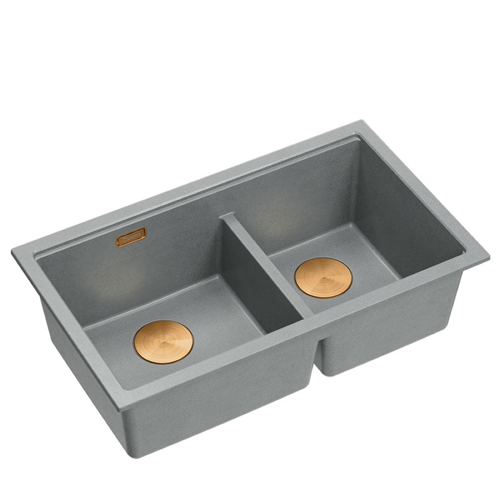 Quadron Logan 120 zlewozmywak granitowy silver stone wpuszczany/podwieszany + stal/miedź PVD/złoto PVD