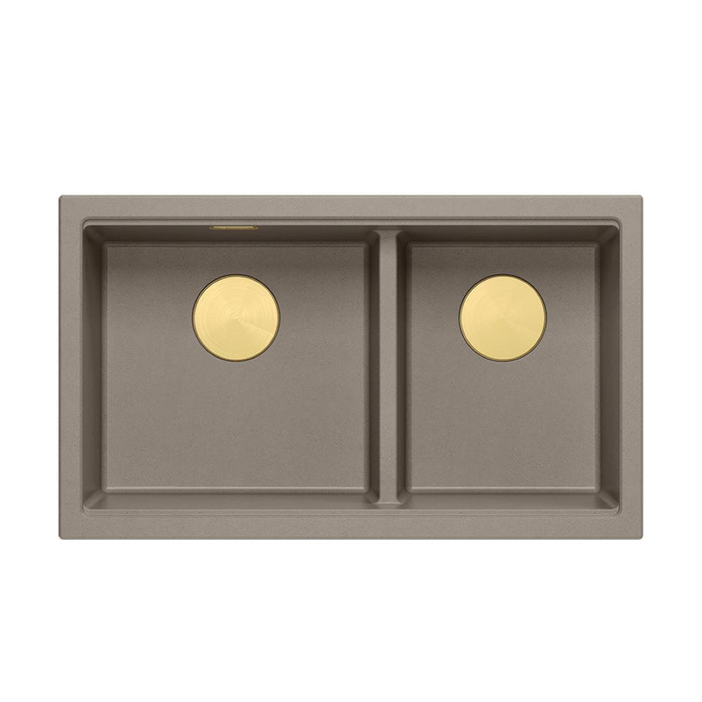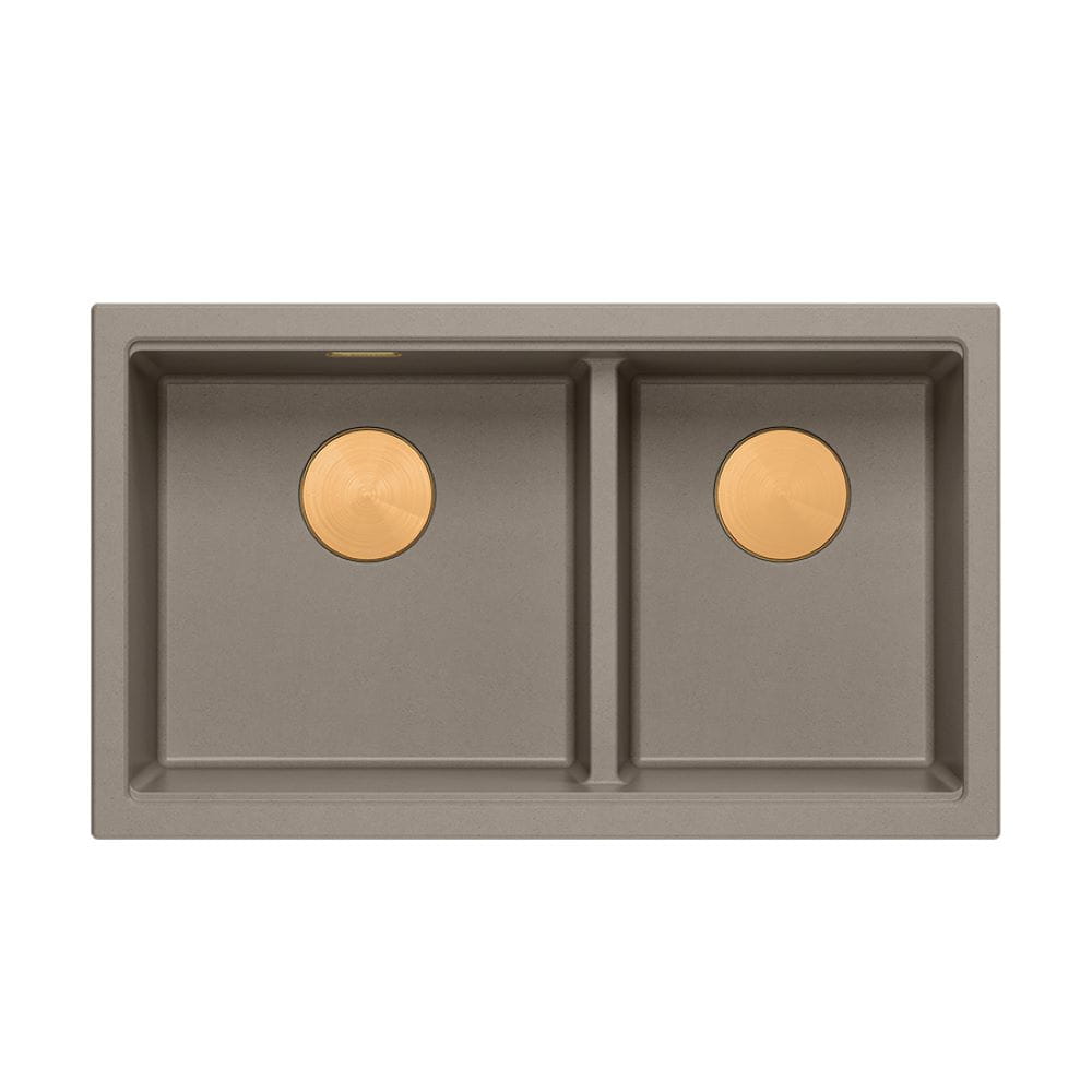 Quadron Logan 120 zlewozmywak granitowy soft taupe wpuszczany/podwieszany + stal/miedź PVD/złoto PVD