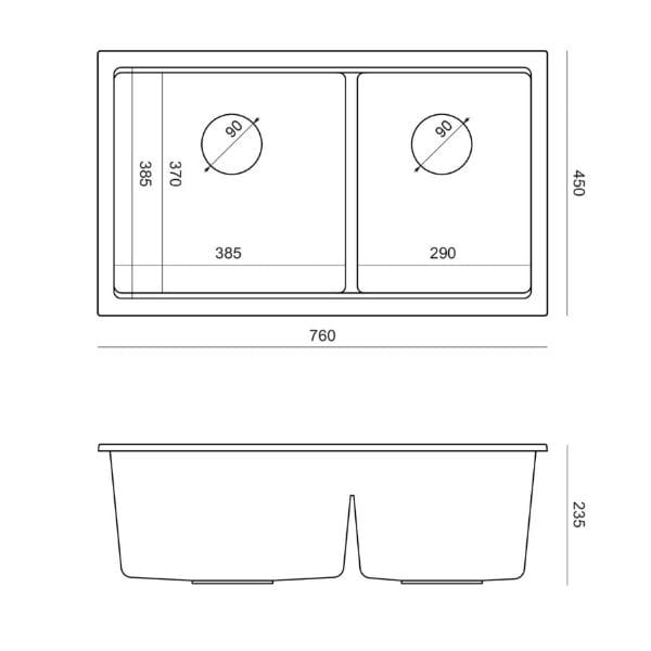 | Długość x szerokość zlewozmywaka | 760 mm x 450 mm |