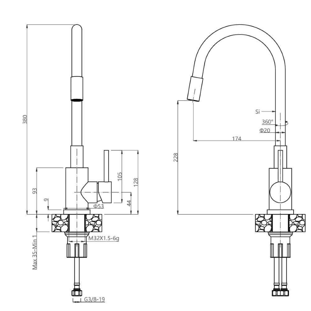 * Zlewozmywak posiada 2 punkty pod otwory (na baterię, dozownik etc.) o średnicy Ø35 mm.