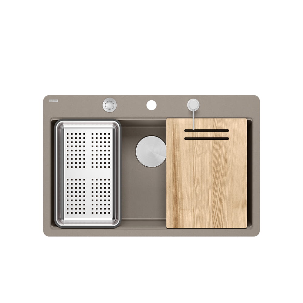 MARC 110 FM* do montażu na równi z blatem, to jednokomorowy zlewozmywak, który dzięki swojej pojemności pozwala na szerokie wykorzystanie w kuchni. Produkt zamontowany w ten sposób wygląda bardzo nowocześnie, nadając styl pomieszczeniu, a jednocześnie pozwala uniknąć zatrzymywania się resztek jedzenia lub brudu na rantach. Jednym ruchem można zgarnąć okruszki, lub inne pozostałości po wykonywanej pracy do komory zlewu, dzięki czemu utrzymanie porządku stanie się zdecydowanie łatwiejsze. Model ten wyposażony jest w standardzie w syfon Push-2-Open, dzięki czemu nie ma potrzeby moczenia rąk, aby opróżnić komorę. Wariant ze stalową armaturą, uzupełniony jest o trzy funkcjonalne akcesoria w tym samym kolorze. Natomiast zlewy z armaturą w powłoce PVD, w komplecie otrzymują jeden dodatkowy element wyposażenia kuchennego - deskę kuchenną. Dzięki swoim atutom: dużej komorze, wyposażonej w funkcjonalne akcesoria, oraz sposobowi montażu, zlewozmywak MARC 110 FM to nie tylko świetne rozwiązanie użytkowe, ale także dobrze wyglądający element przestrzeni kuchennej.