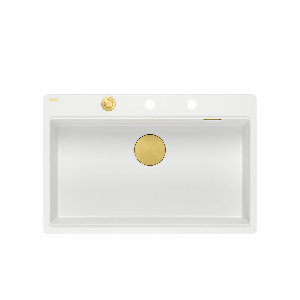 Quadron Marc 110 FM PRODUKT NA ZAMÓWIENIE | granitowy zlewozmywak kuchenny BIAŁY + ZŁOTO PVD | akcesoria: syfon, dozownik, deska | 1-komorowy na równi w blatem