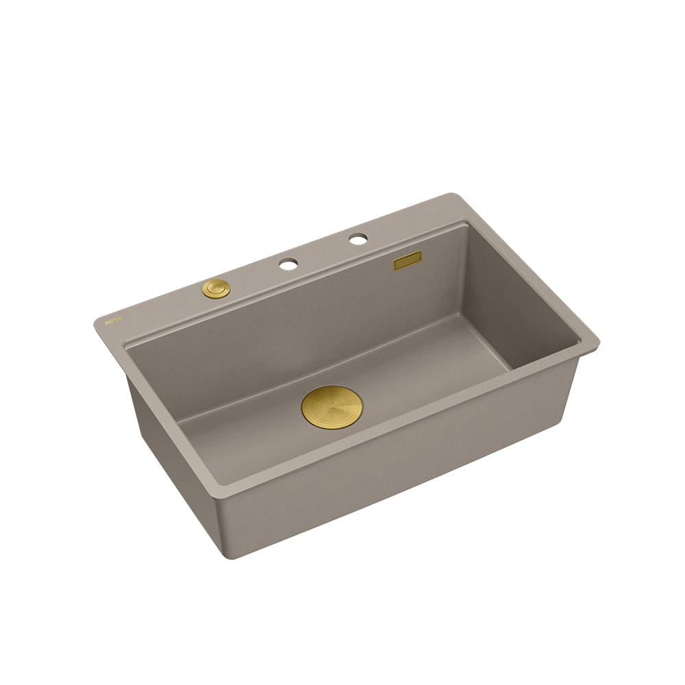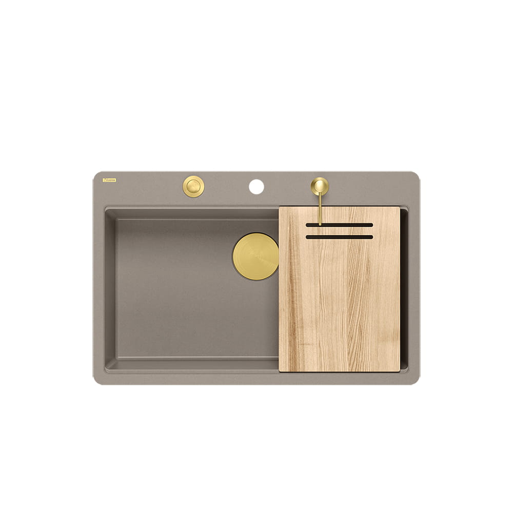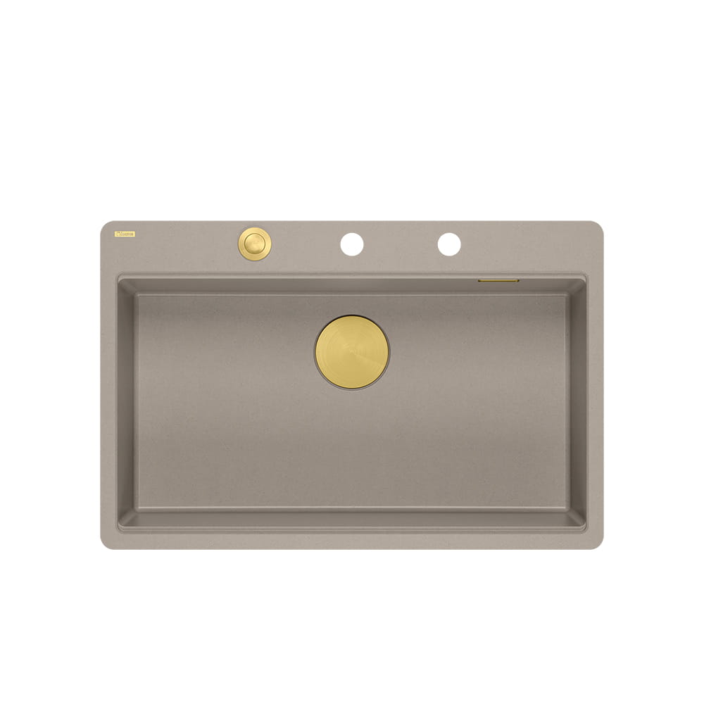 Quadron Marc 110 FM PRODUKT NA ZAMÓWIENIE | granitowy zlewozmywak kuchenny SZAROBEŻOWY + ZŁOTO PVD | akcesoria: syfon, dozownik, deska | 1-komorowy na równi w blatem