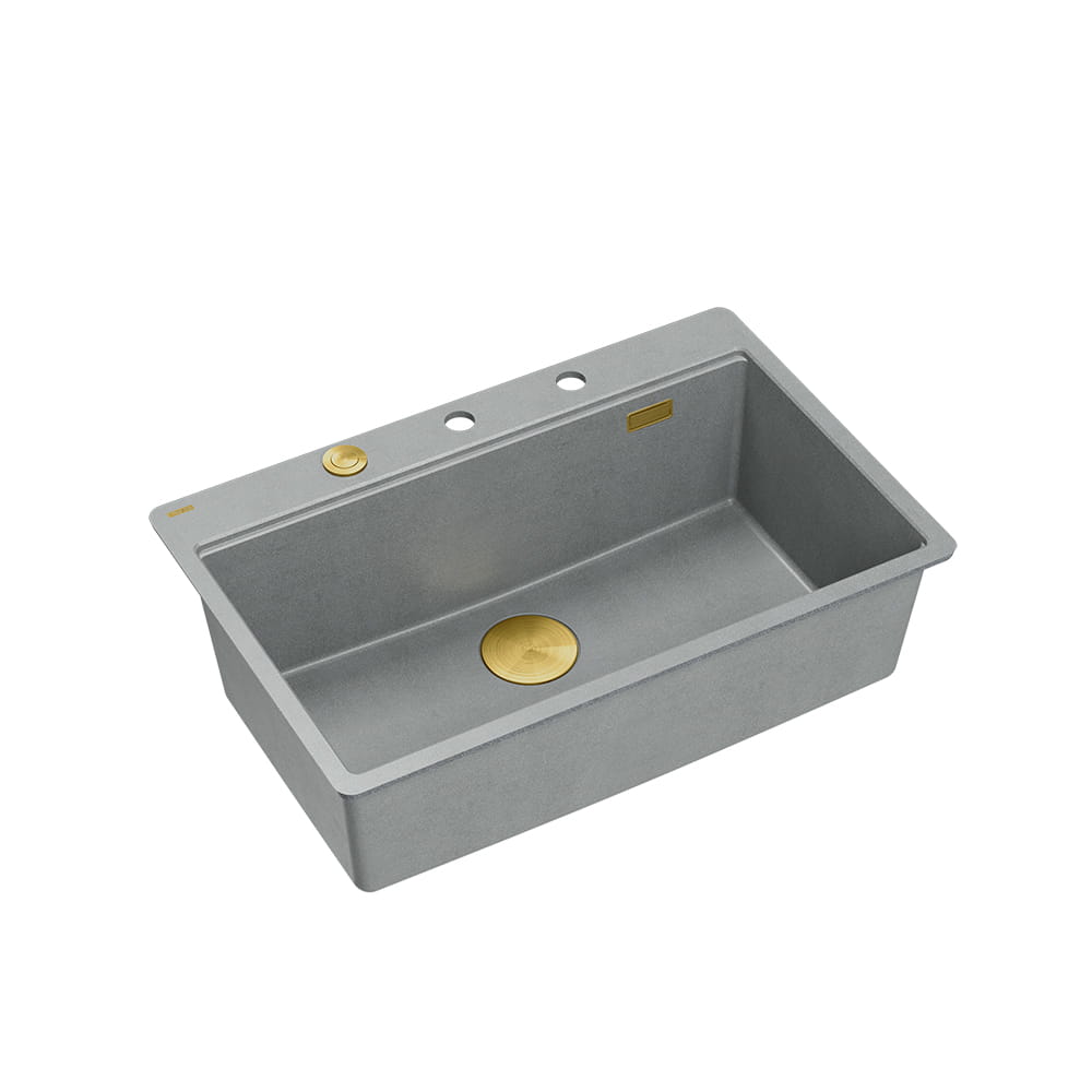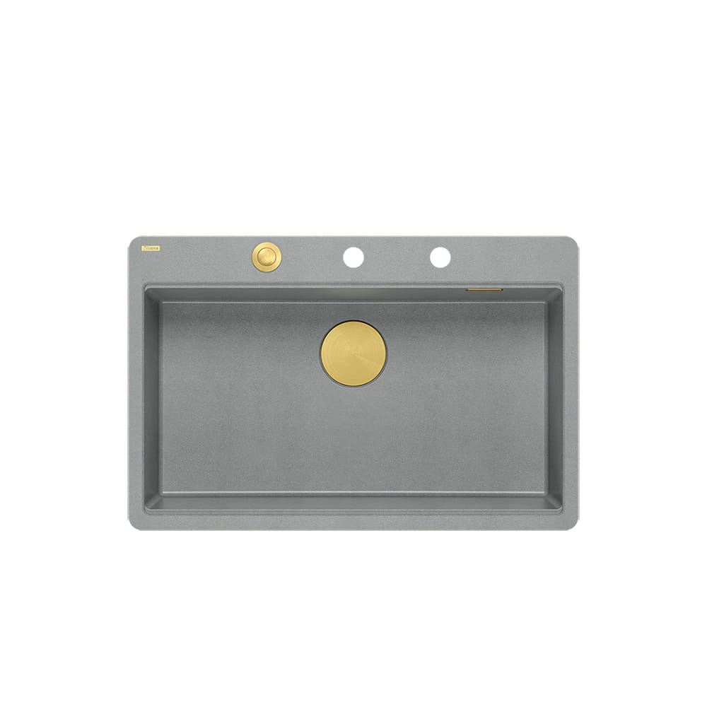 Quadron Marc 110 FM PRODUKT NA ZAMÓWIENIE | granitowy zlewozmywak kuchenny SZARY + ZŁOTO PVD | akcesoria: syfon, dozownik, deska | 1-komorowy na równi w blatem
