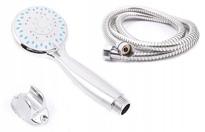 Słuchawka Z1 prysznicowa 5- funkcyjna o wysokiej jakości, wykonana z tworzywa PCV, w kolorze chrom / połysk wraz z wężem 150 cm. Gwint standardowy 1/2''. Powłoka odporna na przebarwienia i wysoką temperaturę. Dysze z systemem Anticalc. Pasuje do każdego węża.