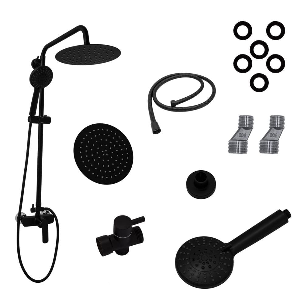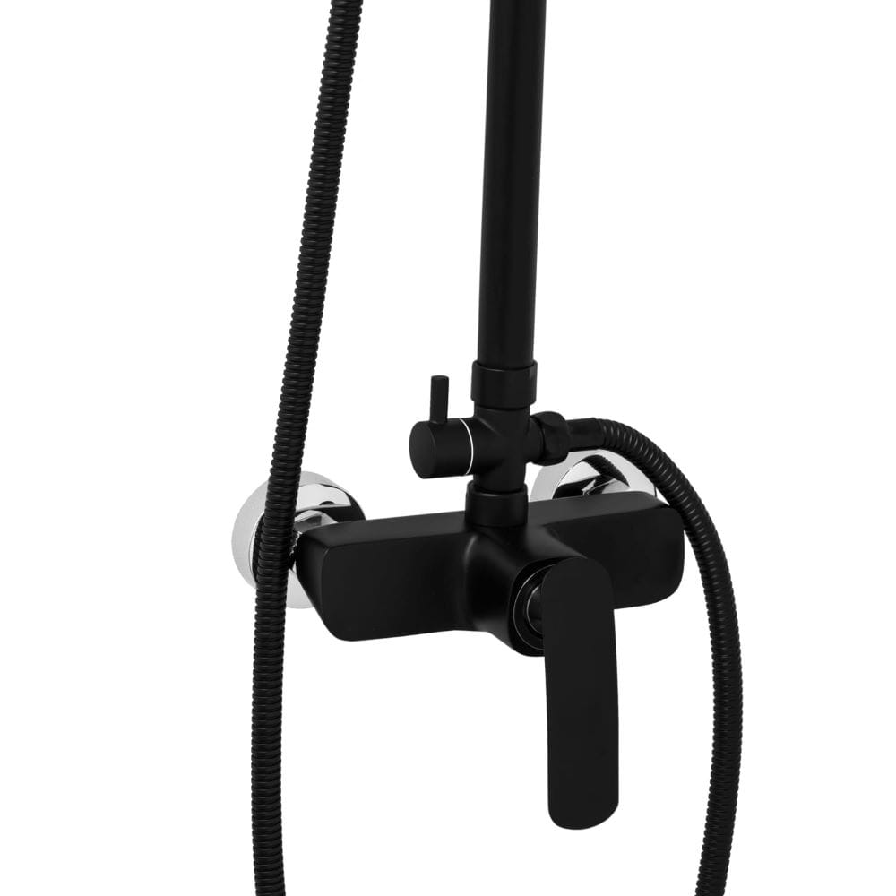 Tony zestaw natryskowy z deszczownicą slim o wysokiej jakości, wykonany z mosiądzu, stali nierdzewnej oraz tworzywa PCV, w kolorze czarnym. Powłoka odporna na przebarwienia i wysoką temperaturę. Deszczownica SLIM 20 cm wykonana ze stali nierdzewnej z dyszami ANTICALC. Słuchawka 3-funkcyjna, z dyszami ANTICALC.