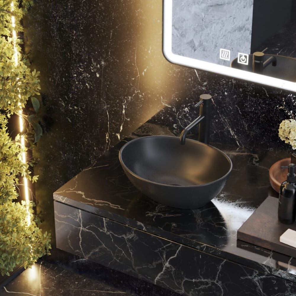 Umywalka nablatowa owalna czarna ceramiczna łazienkowa Astro
