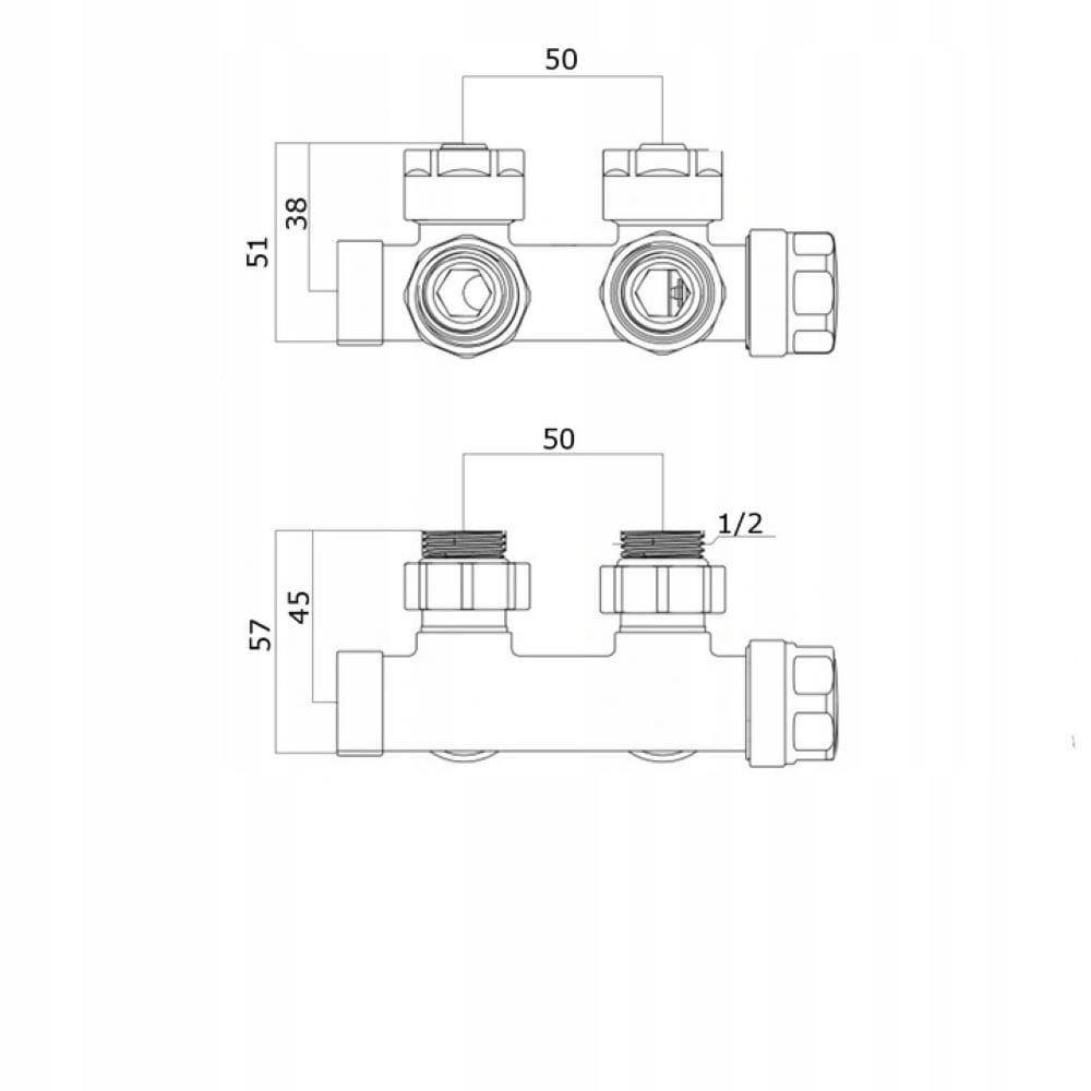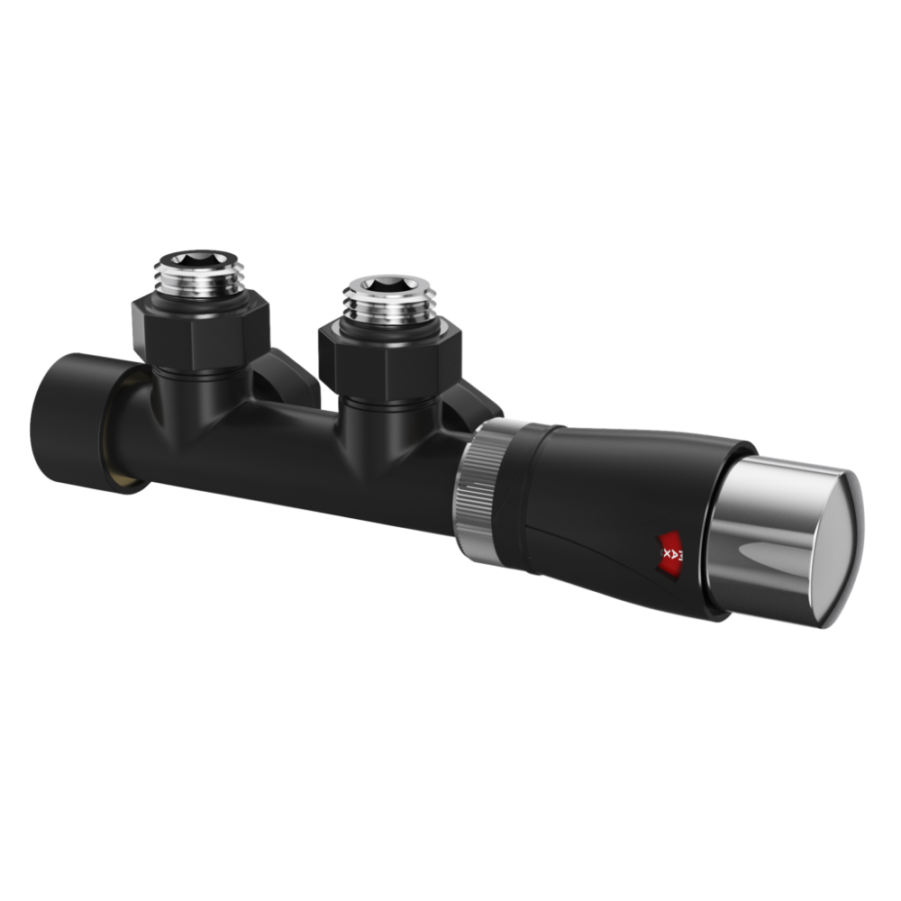 Zawór termostatyczny do grzejnika PEX komplet mosiężny głowica 1/2 czarny