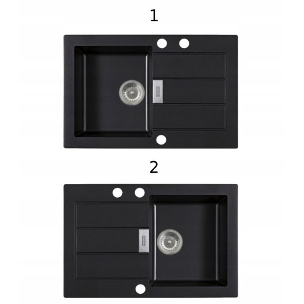 Zlewozmywak jest odwracalny. Otwory Ø 35 mm nawiercone są już fabrycznie i umiejscowione na ociekaczu bliżej krawędzi komory do mycia.