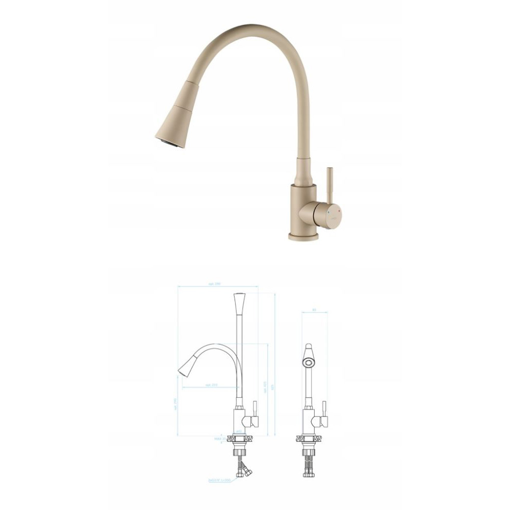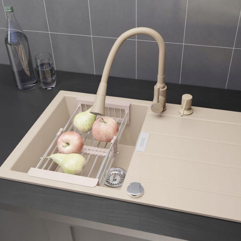 ● Wybierając baterię zlewozmywakową Selva w subtelnym beżowym wykończeniu z eleganckimi chromowanymi akcentami, wprowadzisz do swojej kuchni powiew świeżości i ciepła. Jej nowoczesna forma doskonale łączy się z delikatnym beżem, tworząc produkt, który świetnie zaprezentuje się zarówno we wnętrzach klasycznych, jak i tych bardziej nowoczesnych. To idealna propozycja, jeśli szukasz baterii kuchennej, która jest nie tylko niezwykle funkcjonalna dzięki elastycznej wylewce, ale także stanowi stylowy element dekoracyjny.