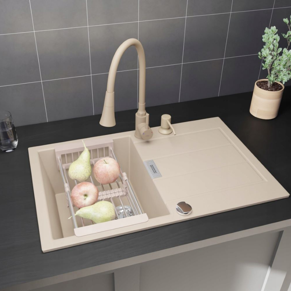 Zestaw - Zlewozmywak FRANKE s2d 611-78 beżowy - bateria wyciągana wylewka - dozownik - koszyk