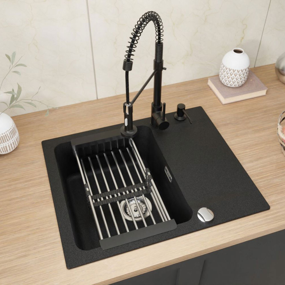 ● Bateria kuchenna LUNEO Granitan to połączenie stylu i funkcjonalności. Wyposażona w elastyczną wylewkę oraz ergonomiczny uchwyt, zapewnia komfort podczas codziennych prac kuchennych. Dzięki nowoczesnemu designowi świetnie komponuje się zarówno z minimalistycznymi, jak i bardziej klasycznymi aranżacjami. LUNEO to nie tylko praktyczne rozwiązanie, ale również elegancki akcent w każdej kuchni.