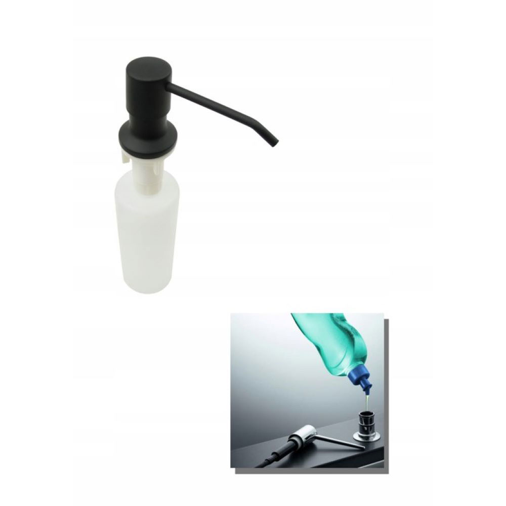 ● Dozownik okrągły plastikowy do zlewozmywaków. Możliwość zamontowania w zlewozmywaku kuchennym, blacie kuchennym. Pojemność pojemnika na płyn 350 ml.