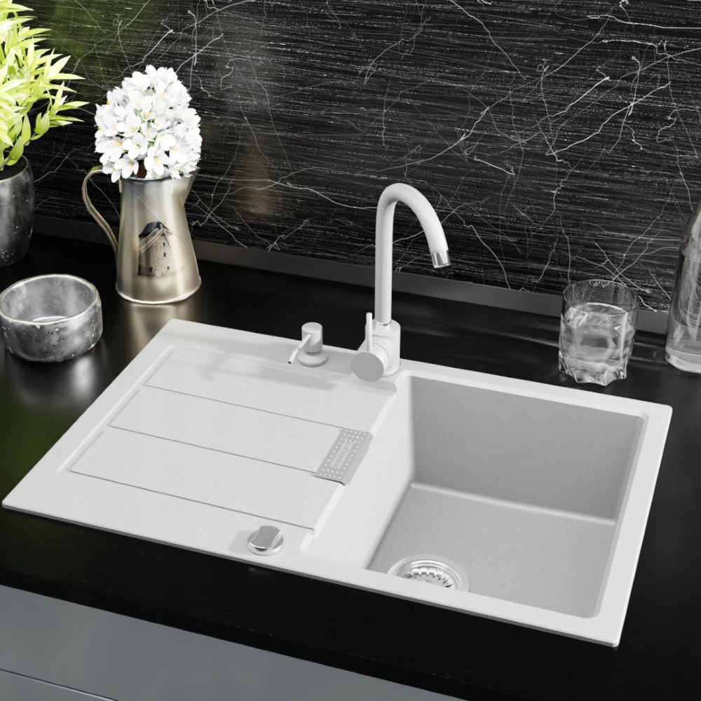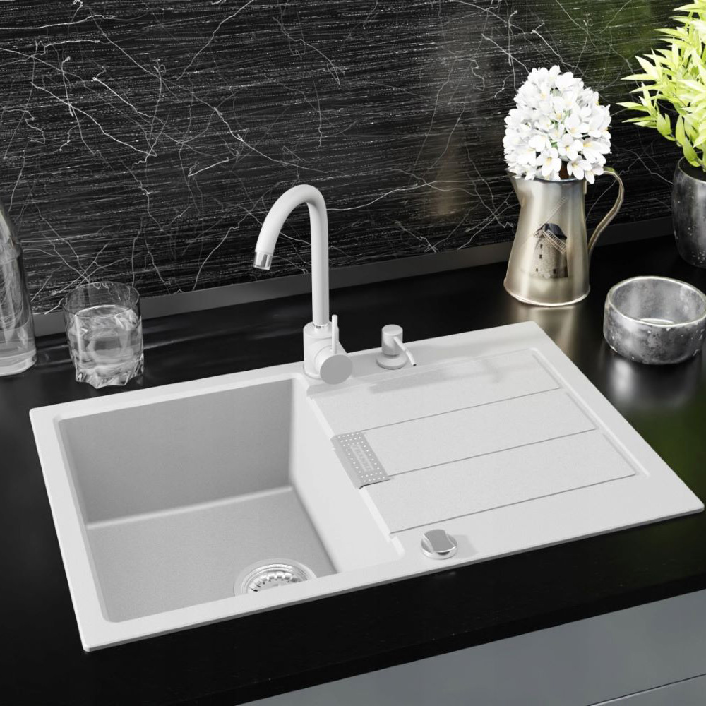 ● FRANKE Sirius SID 611-78, to jednokomorowy, odwracalny zlewozmywak, w kolorze białym, do szafki od 60 cm. Praktyczny element wyposażenia kuchni. Wyprodukowany przez szwajcarskiego producenta - Franke. Wykonany z tworzywa SMC powleczonego materiałem PiMC, które zapewnia mu trwałość, zabezpieczenie od wysokich temperatur oraz środków chemicznych. Wykazuje także odporność na zarysowania czy zadrapania. Dzięki temu posłuży Ci bezawaryjną pracą przez długi czas oraz ułatwi codzienne przygotowywanie posiłków czy zmywanie naczyń. Instalację usprawni system Fast Fix, który polega na zastosowaniu innowacyjnych zaczepów, dzięki którym szybko i bez trudu osadzimy nasz zlewozmywak w blacie.