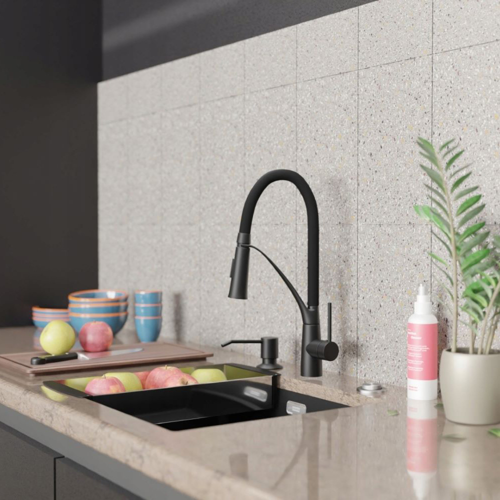 ● Bateria kuchenna NEXO to połączenie nowoczesnego designu i funkcjonalności, idealnie komponujące się z każdą kuchnią. Wykonana z wysokiej jakości mosiądzu, zapewnia trwałość i odporność na korozję. Dwufunkcyjna słuchawka pozwala na łatwe przełączanie między strumieniem standardowym a prysznicowym, dostosowując się do różnych potrzeb użytkownika.