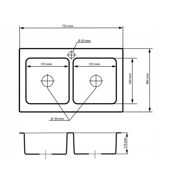 | Średnica odpływu | 90 mm |
