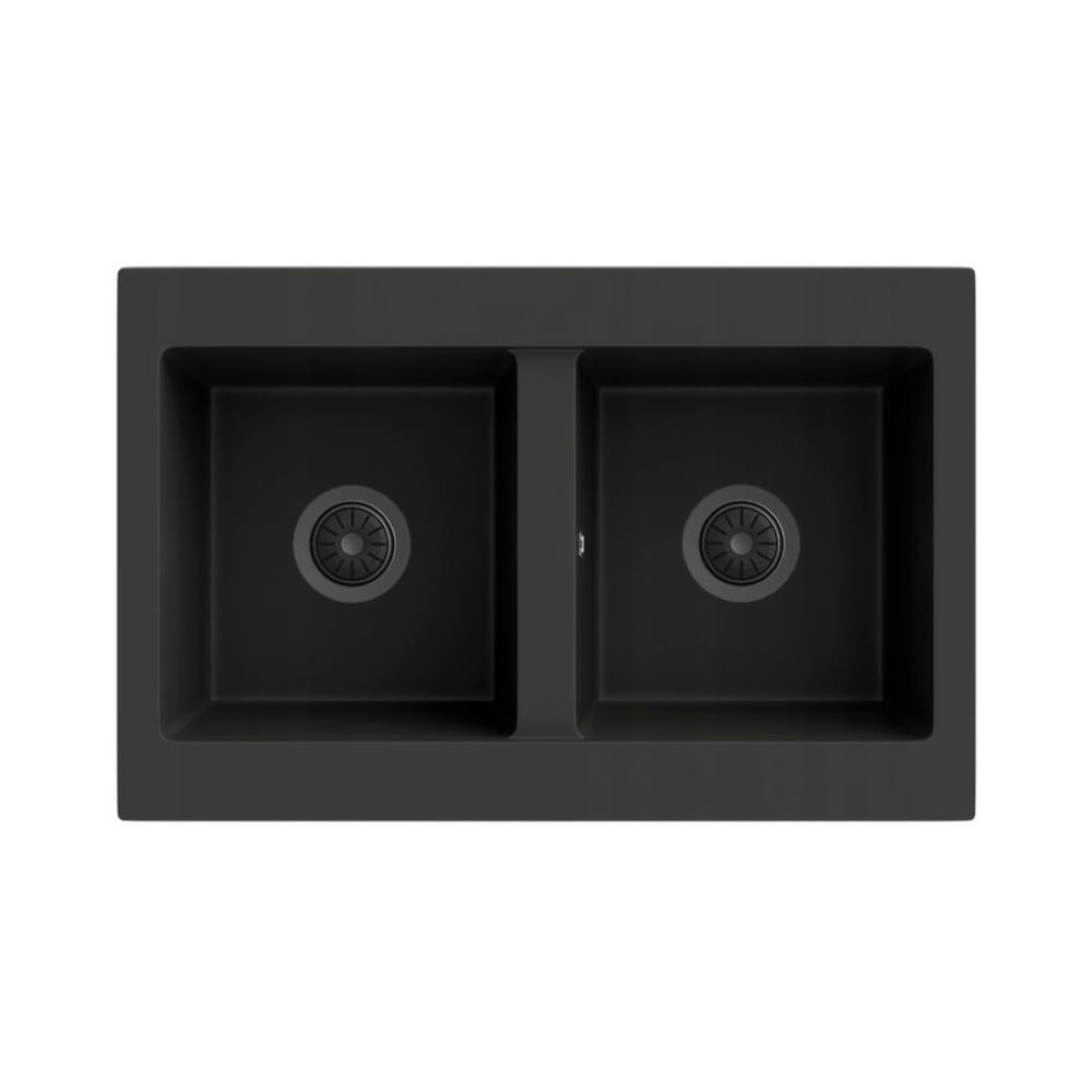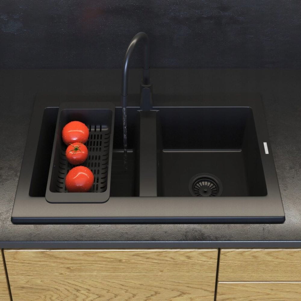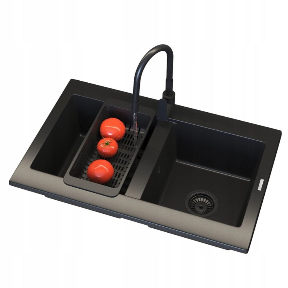 Zestaw - Zlewozmywak kuchenny granitowy czarny Verso - bateria - koszyk - syfon