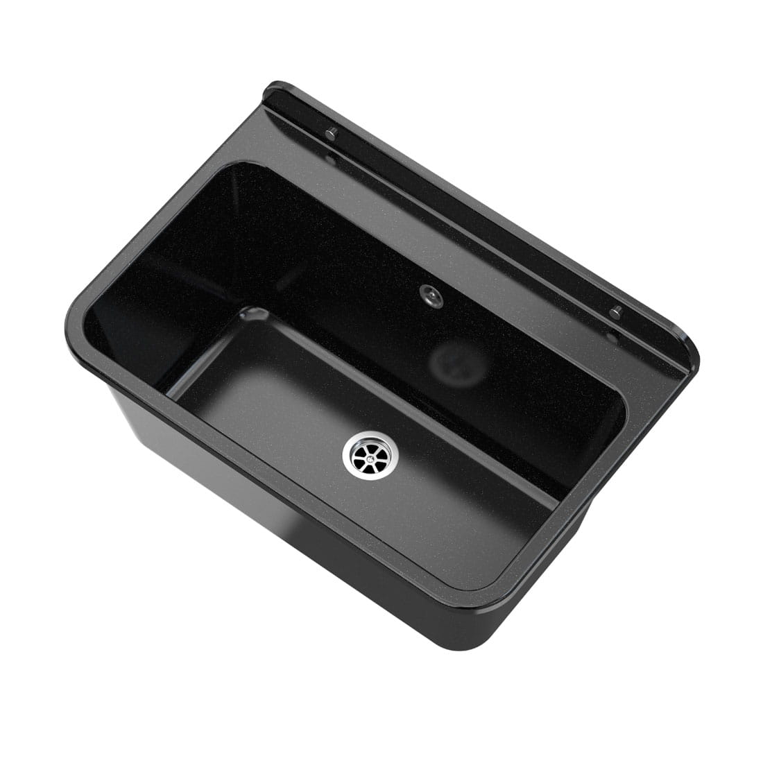 ● Zlew gospodarczy w kolorze czarnym, wykonany z polipropylenu. Odporny na środki chemiczne i wysoką temperaturę. Nadaje się do użytkowania wewnątrz pomieszczeń oraz na zewnątrz. Idealny do garażu, kotłowni, pralni, czy warsztatu. Od spodu zlewozmywaka dwa podcięcia pod baterię i dozownik, wystarczy wybić. W komplecie syfon oraz zestaw montażowy.