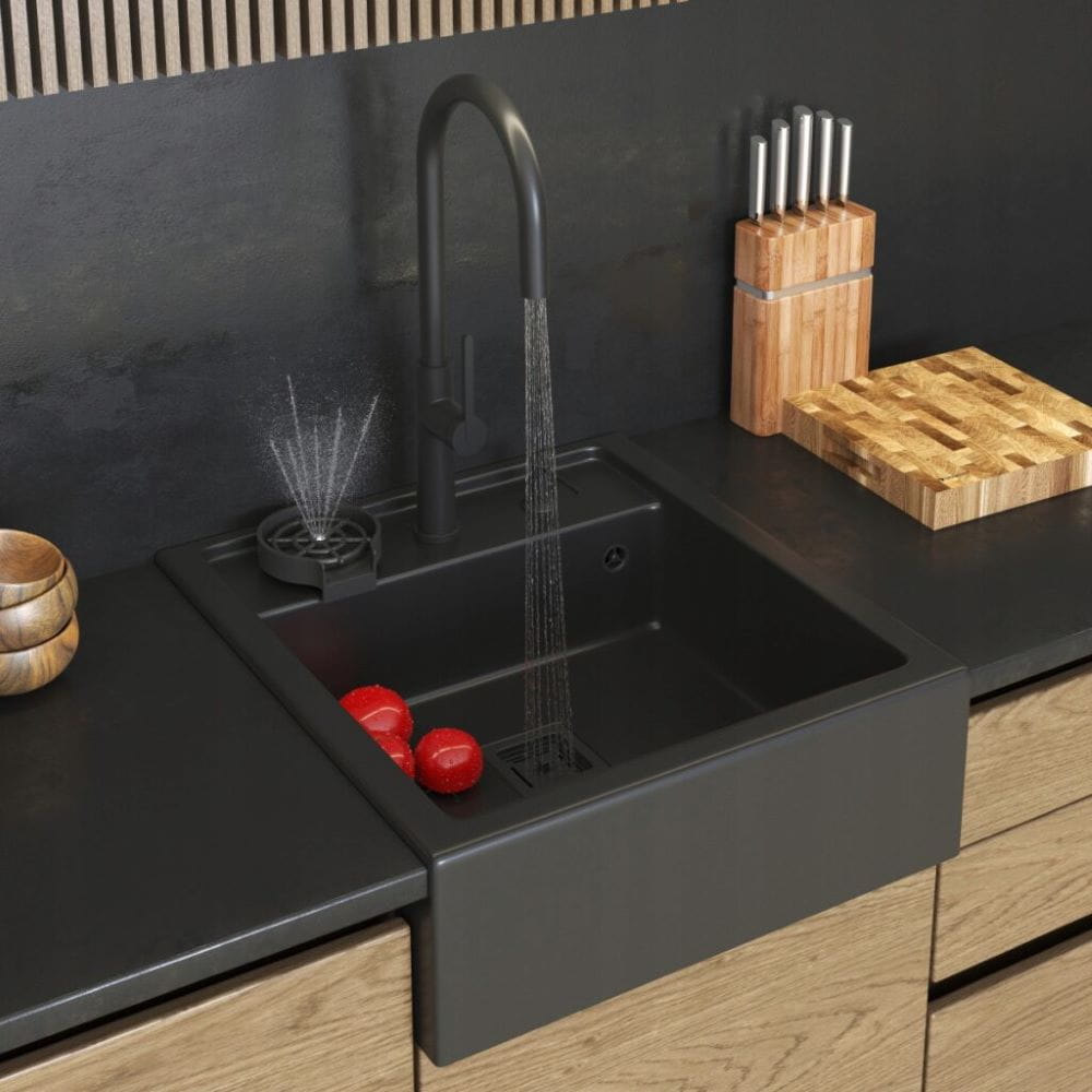 Zestaw - granitowy skandynawski farmerski czarny - kran - dozownik - myjka