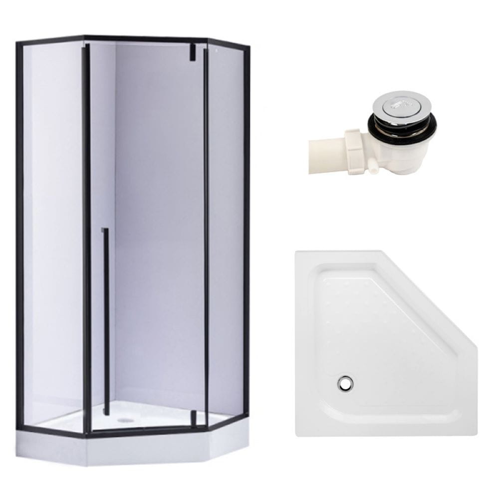 Zestaw - kabina prysznicowa pięciokątna 80x80 cm - brodzik - syfon klik klak