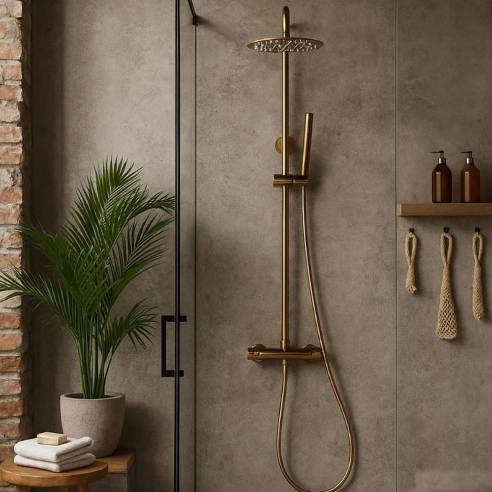 Zestaw prysznicowy RODY PRO w eleganckim, szczotkowanym złocie to połączenie stylu, technologii i wygody użytkowania. Dzięki termostatycznej baterii utrzymującej stałą temperaturę wody, każda kąpiel staje się czystą przyjemnością – bez ryzyka nagłych zmian temperatury. To idealne rozwiązanie dla nowoczesnych łazienek, w których liczy się estetyka i bezpieczeństwo.