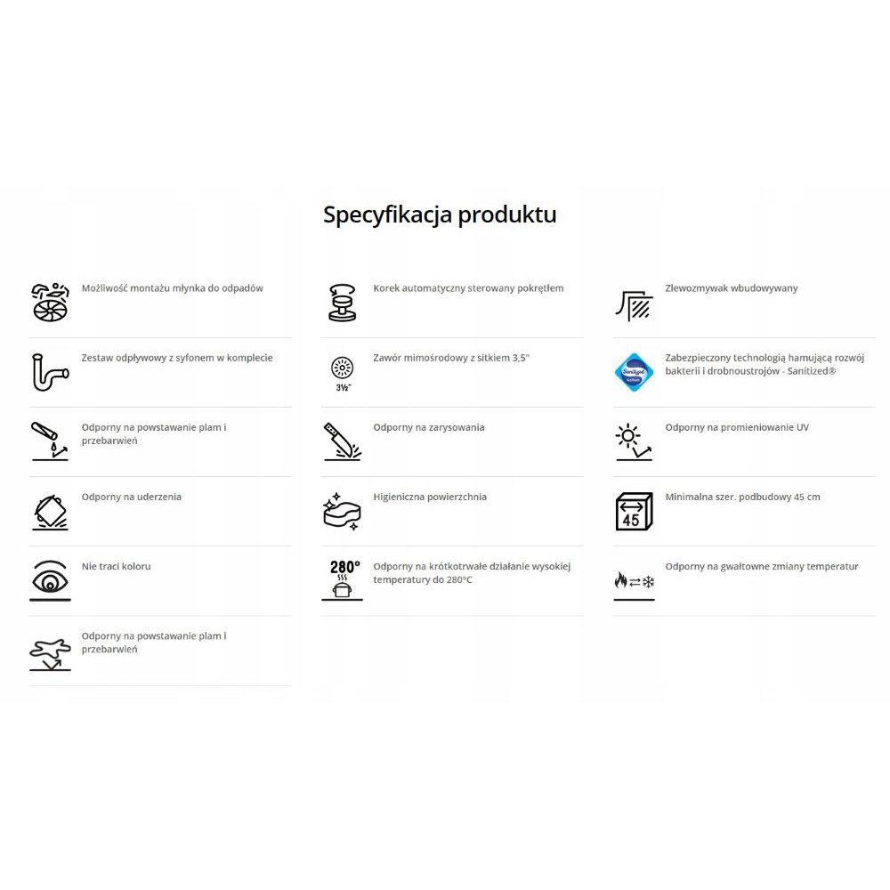 Możliwe jest przewiercenie do 4 otworów Ø 35 w tym zlewozmywaku.