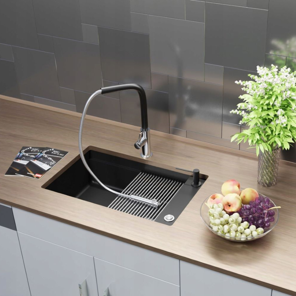 ● Zlewozmywak Franke Kanon KNG 110-62 w kolorze onyx (czarny nakrapiany) lub czarny mat, to idealne rozwiązanie dla nowoczesnej kuchni – trwały, odporny na zarysowania i wysoką temperaturę, a przy tym niezwykle elegancki. Materiał wyprodukowany jest w 80% z prawdziwego granitu, którego głównym składnikiem jest kwarc – jeden z najtwardszych materiałów występujących w przyrodzie. Pozostałe 20% stanowi spoiwo akrylowe, charakteryzujące się wyjątkową wytrzymałością i odpornością. Jego powierzchnia jest idealnie gładka i delikatna w dotyku.