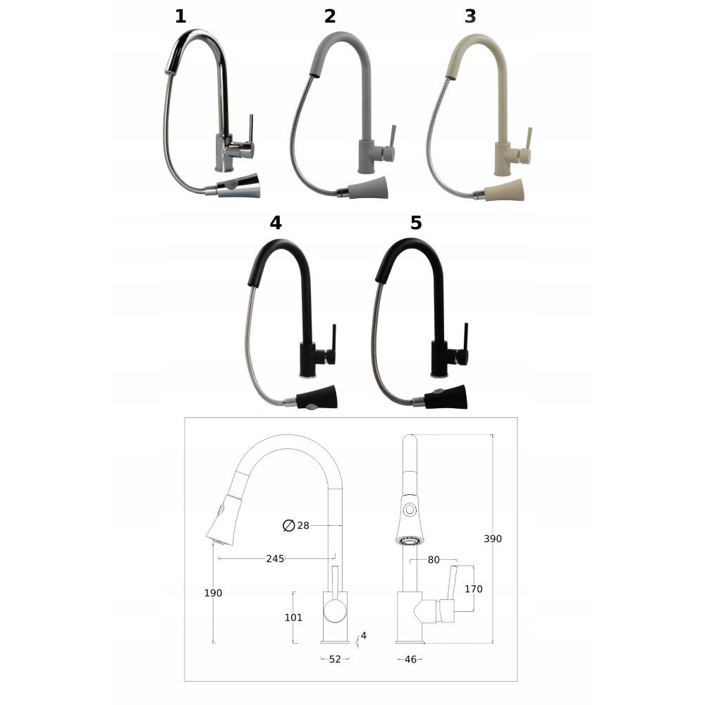 ● Bateria granitowa Snake to idealne połączenie funkcjonalności i designerskiego wyglądu. Elastyczna, wyciągana wylewka zapewnia maksymalną wygodę podczas codziennych prac kuchennych – od napełniania garnków po dokładne płukanie zlewu. Wężyki do podłączenia oraz zestaw do montażu w komplecie. Bateria dostępna w pięciu wariantach kolorystycznych.