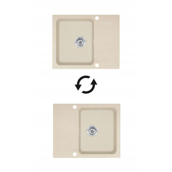 Zlewozmywak jest odwracalny. Otwory w zlewozmywaku pod baterię i pokrętło od syfonu automatycznego są już nawiercone fabrycznie.