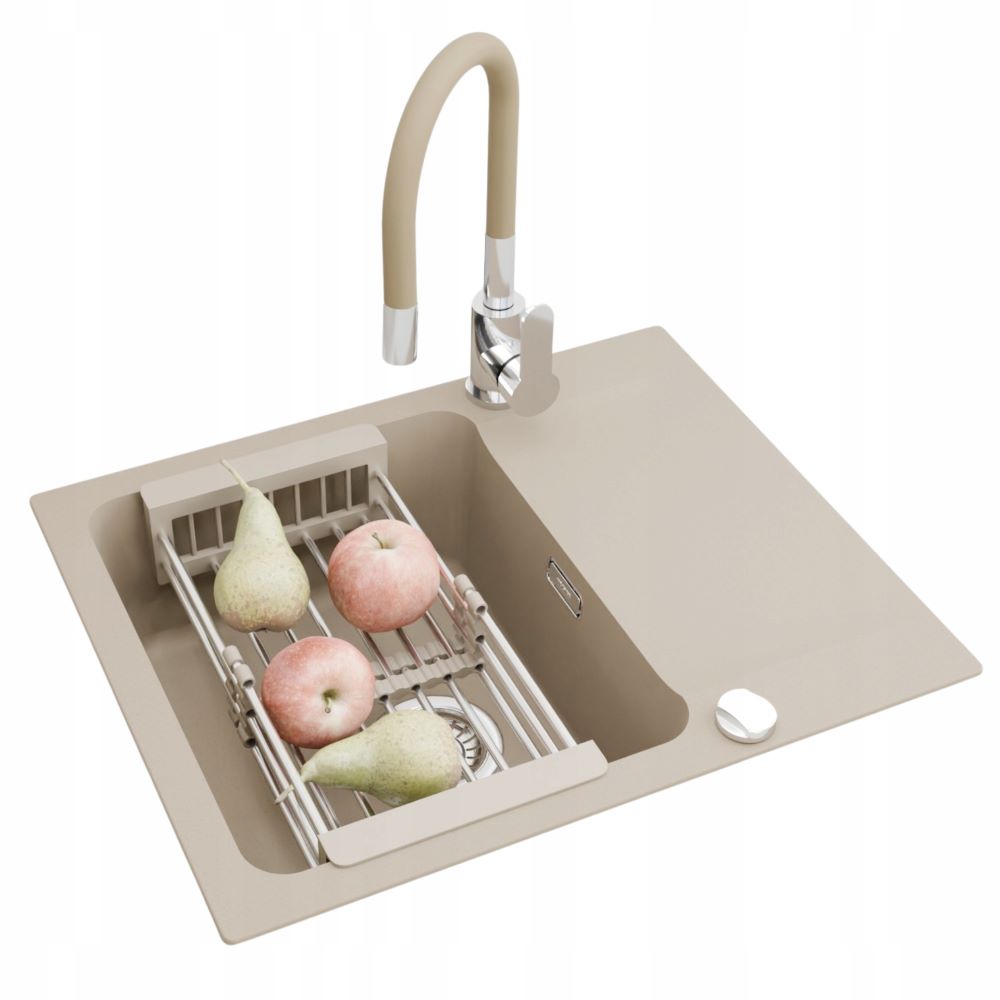 Zestaw - zlew Franke Orion OID 611-62 beżowy - bateria Grado - koszyk - syfon