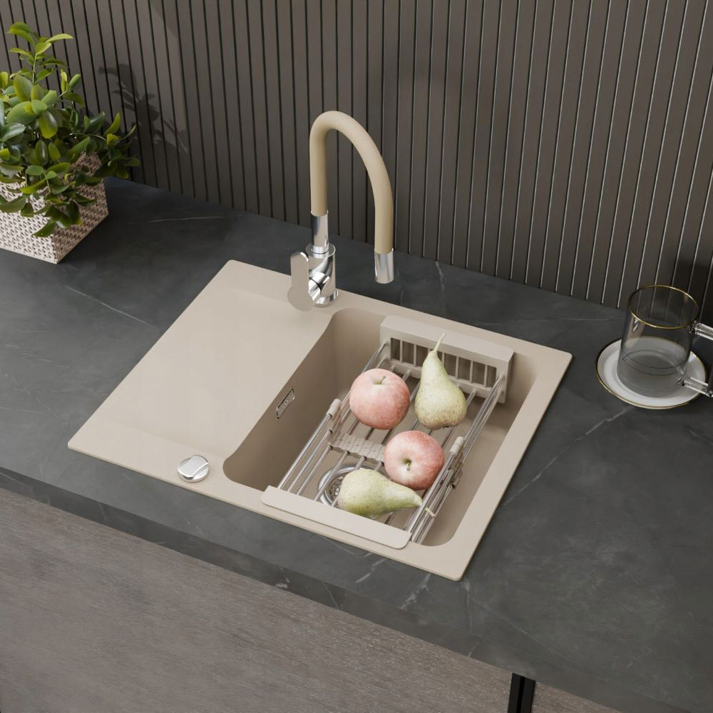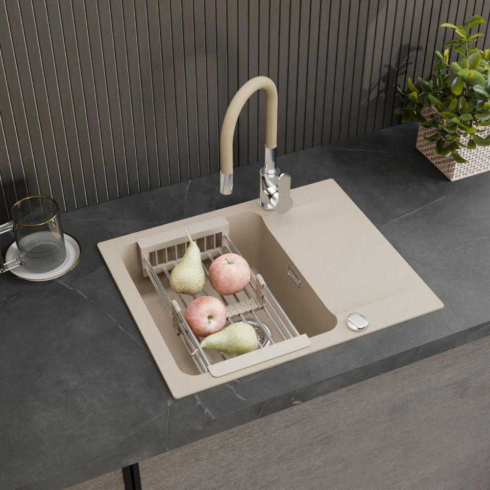 ● FRANKE Orion Oid 611-62 Tectonite, to jednokomorowy zlewozmywak, w kolorze beżowym, do szafki od 45 cm. Praktyczny element wyposażenia kuchni. Wybierając zlewozmywak z innowacyjnego materiału Tectonite® sięgasz po nowoczesność, funkcjonalność oraz swobodę działania w kuchni. Zlewozmywaki Tectonite® to nowa generacja zlewozmywaków odpornych na wysokie temperatury, uderzenia, zadrapania i powstawanie plam. Materiał Tectonite® jest higieniczny, lekki, delikatny w dotyku i ekologiczny.
