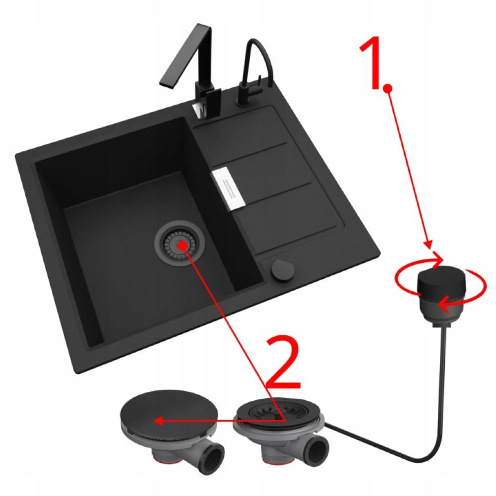 - pokrętło od syfonu automatycznego w kolorze czarnym,