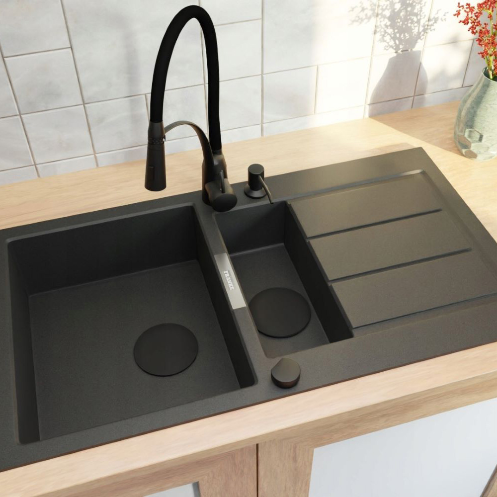 ● Półtorej komorowy zlewozmywak FRANKE Sirius SID w kolorze czarnym to praktyczny element wyposażenia kuchni. Produkt wygodnie zamontujesz w blacie zabudowy kuchennej. Zastosowanie tworzywa SMC powleczonego materiałem PiMC sprawia, że produkt wykazuje wysoką odporność na uszkodzenia mechaniczne. Dzięki temu sprawdzi się także w pomieszczeniach o przeznaczeniu gospodarczym, nie tracąc swych walorów estetycznych.