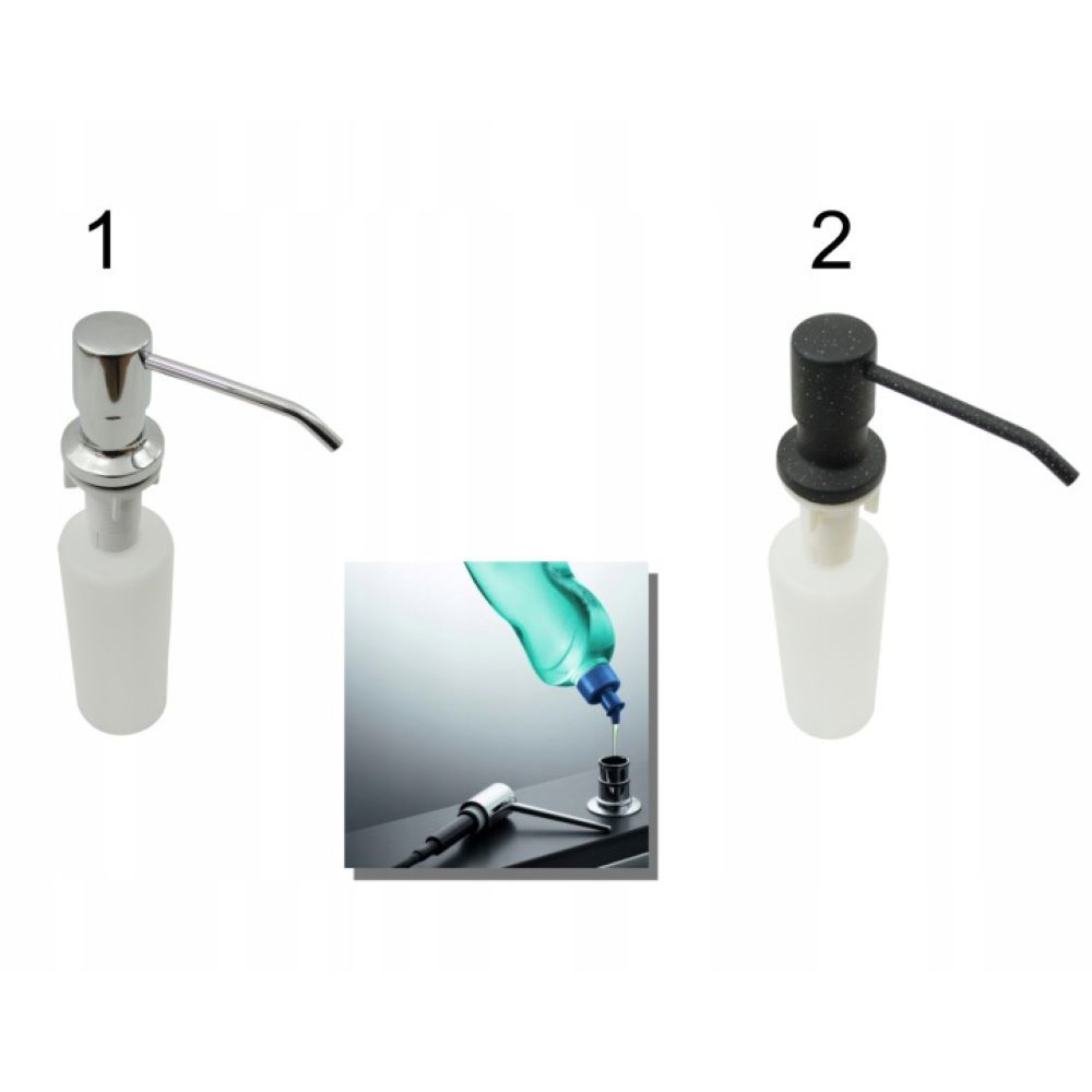 ● Dozownik okrągły plastikowy do zlewozmywaków. Możliwość zamontowania w zlewozmywaku kuchennym, blacie kuchennym. Pojemność pojemnika na płyn 350 ml. Dostępny w dwóch wariantach kolorystycznych.
