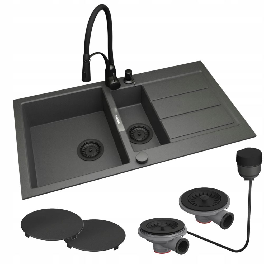 - 2 odpływy i 2 osłonki odpływu w kolorze czarnym.