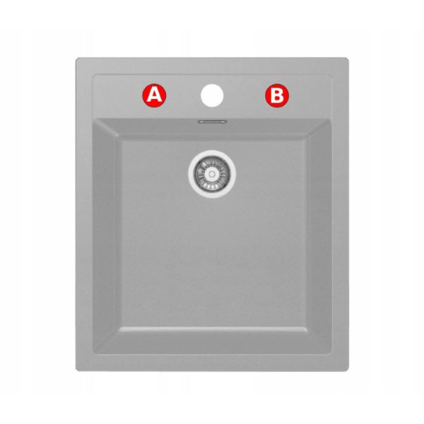 W zlewozmywaku nawiercony jest fabrycznie 1 otwór centralnie po środku zlewozmywaka. Istnieje możliwość nawiercenia do dwóch dodatkowych otworów zaznaczono jako punkty A i B. Otwory wykonujemy bezpłatnie.